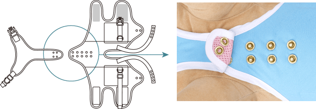 愛犬のサイズや毛の量に応じてボタンの位置を変えて着丈の調節ができます。