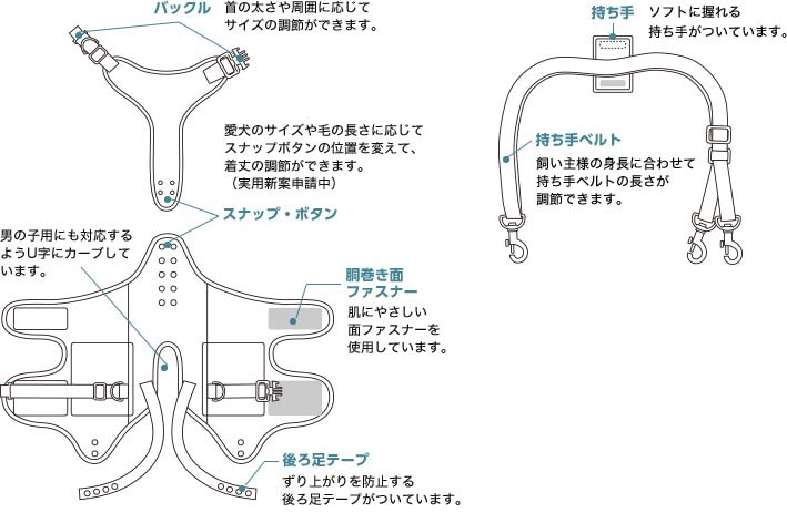 ※この商品は、愛犬の歩行補助のためのハーネスです。くれぐれも愛犬を無理に引っぱったり、持ち上げたりしないよう注意してください。