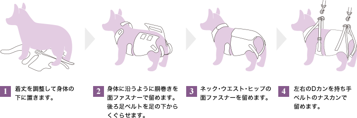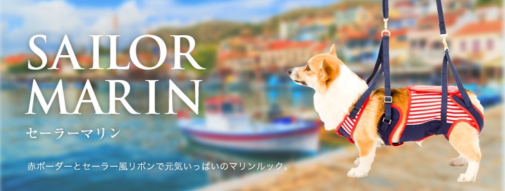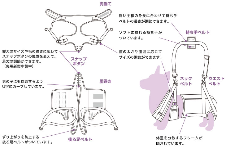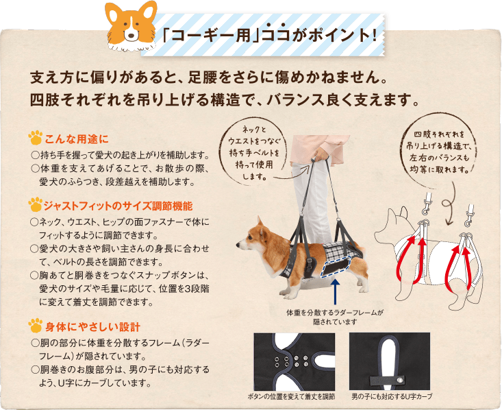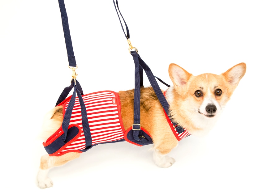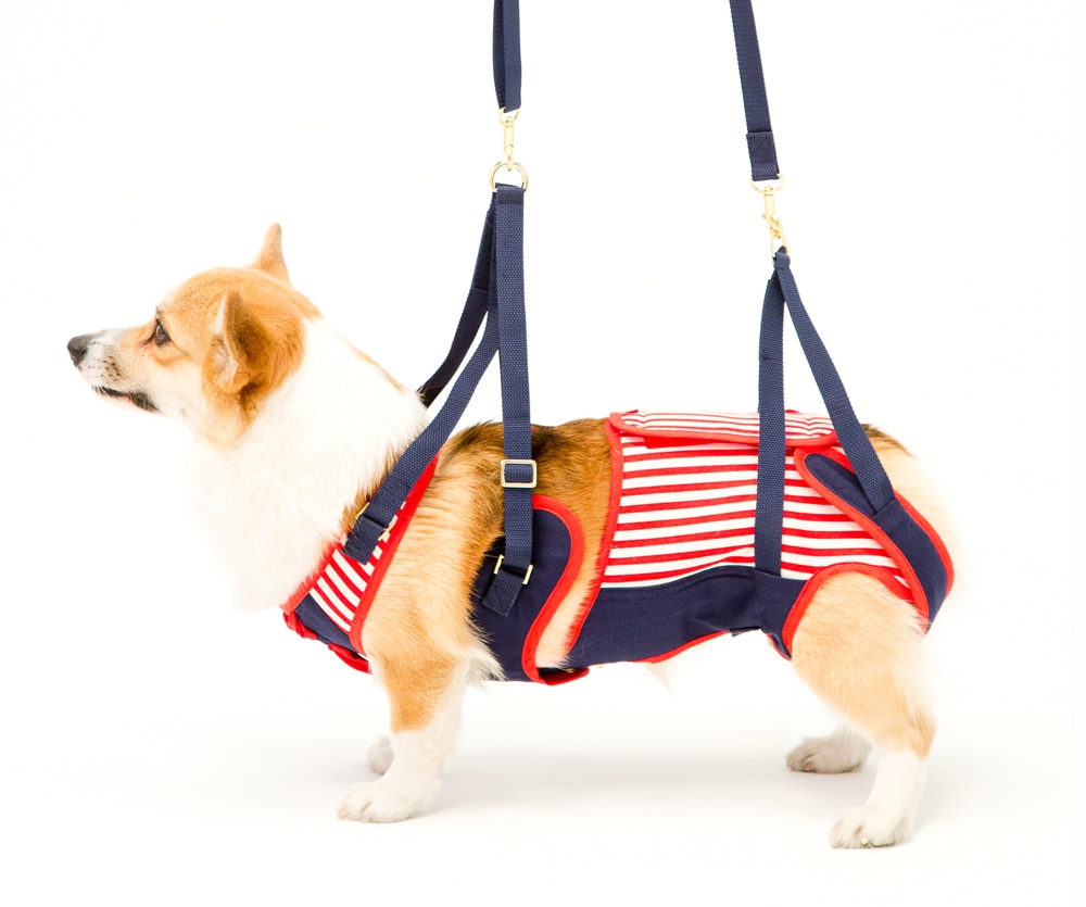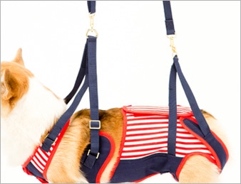 腰が悪くなったり、脚力が低下したワンちゃんの起き上がりを助け、歩行を補助するハーネスです