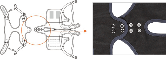 01.ネック、ウエスト、ヒップの面ファスナーで身体にフィットするように調節ができます。