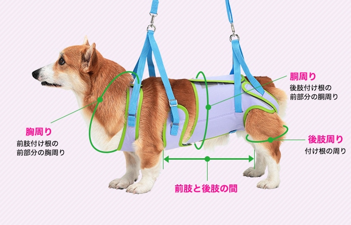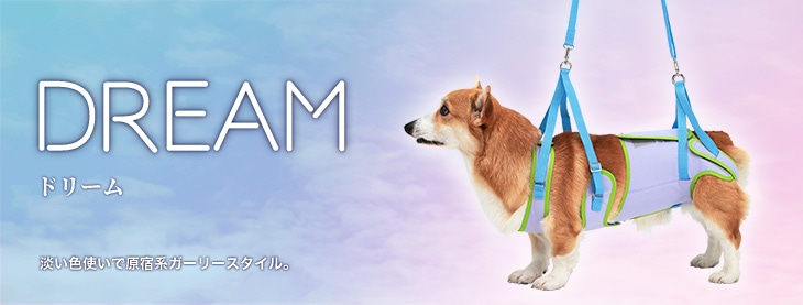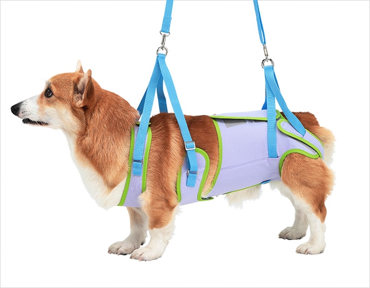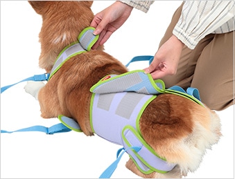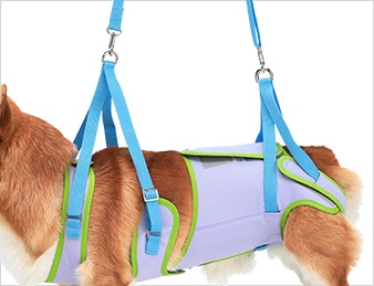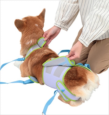腰が悪くなったり、脚力が低下したワンちゃんの起き上がりを助け、歩行を補助するハーネスです
