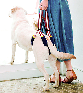 腰が悪くなったり、脚力が低下したワンちゃんの起き上がりを助け、歩行を補助するハーネスです