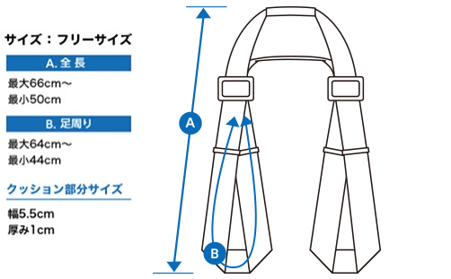 装着は足を通すだけのシンプルな構造です。柔らかく伸縮性のあるネオプレーン素材なので身体への負担を軽減します。