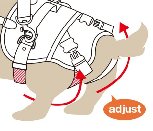 01.左右の後肢を付け根から吊り上げるように補助する歩行補助ハーネスです。