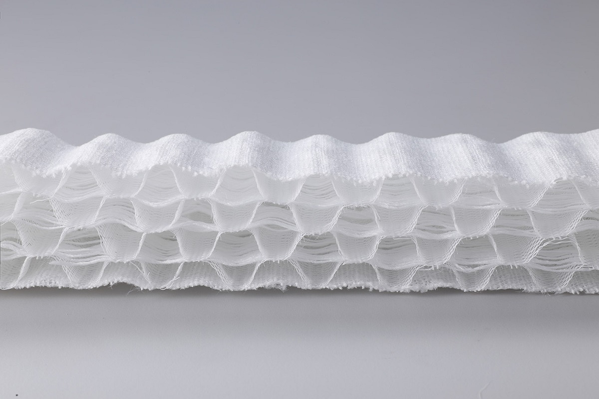 主素材がPTB(特殊ポリエステルの仮称)の立体構造織物です。