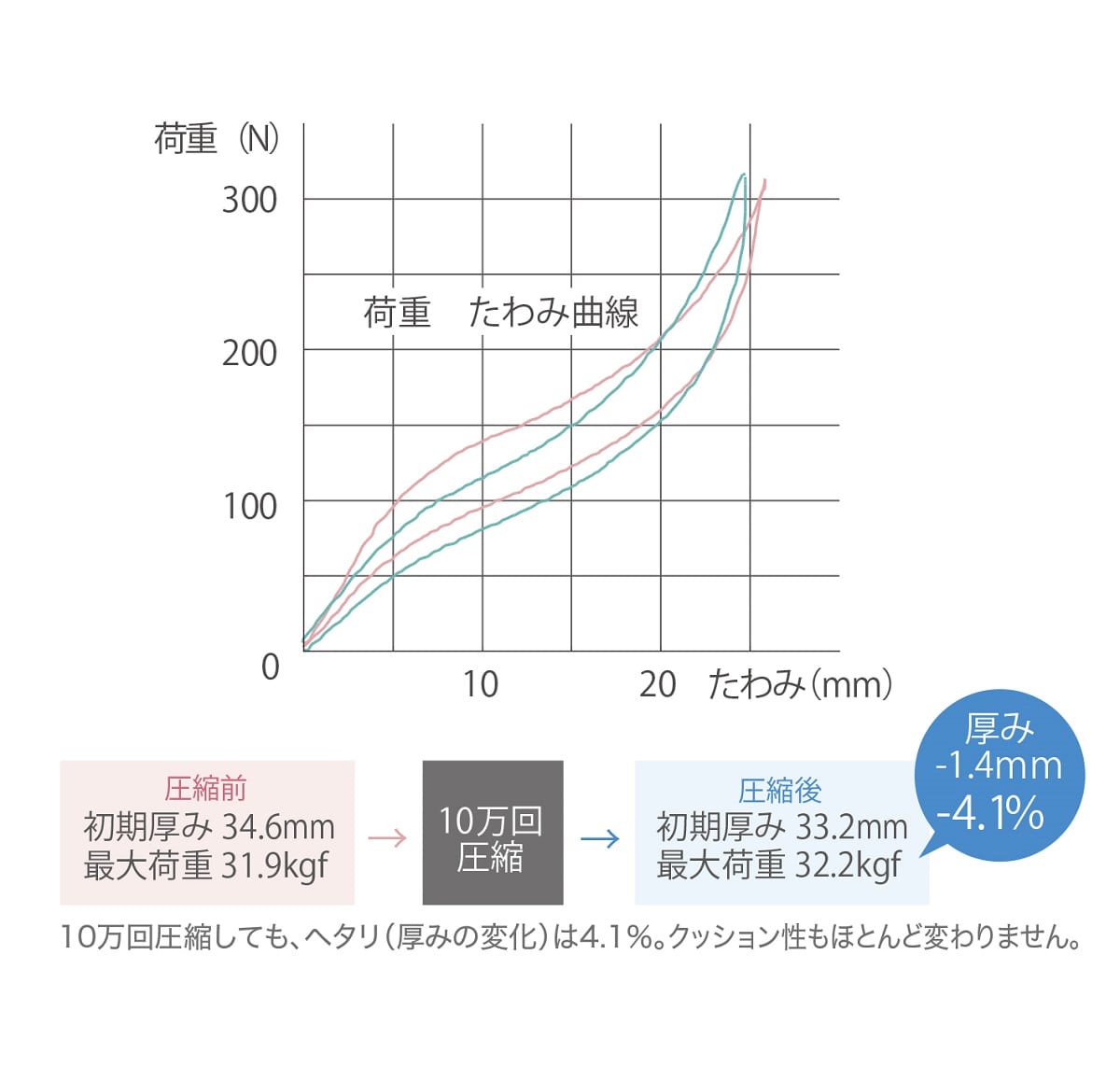 ・各サイズとも体重の40㎏までが快適性の基準です。40㎏を越える場合は、マットの2枚重ねをおすすめします。