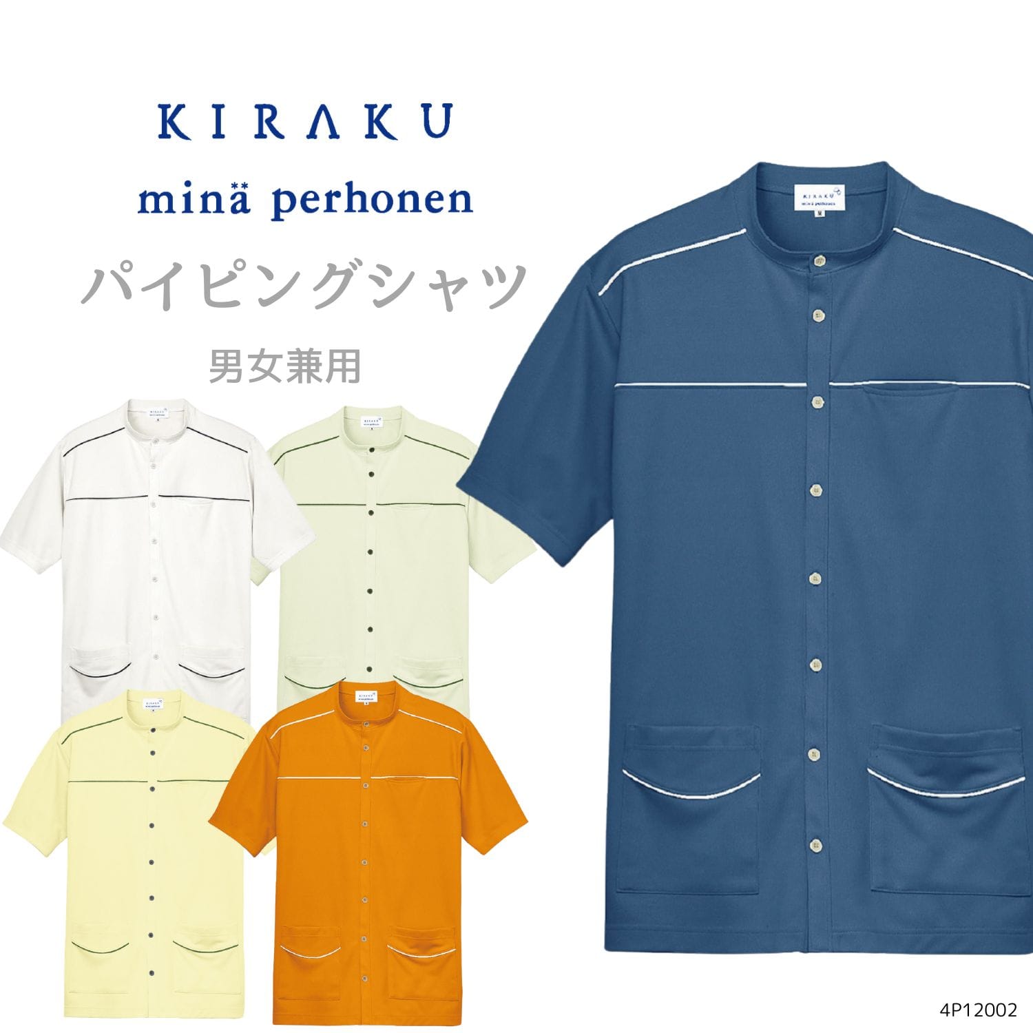 【品番: 4P12002 】 男女兼用 シャツ 介護士用 防縮 吸汗 速乾 両脇ポケット付き ( ミナ ペルホネン )