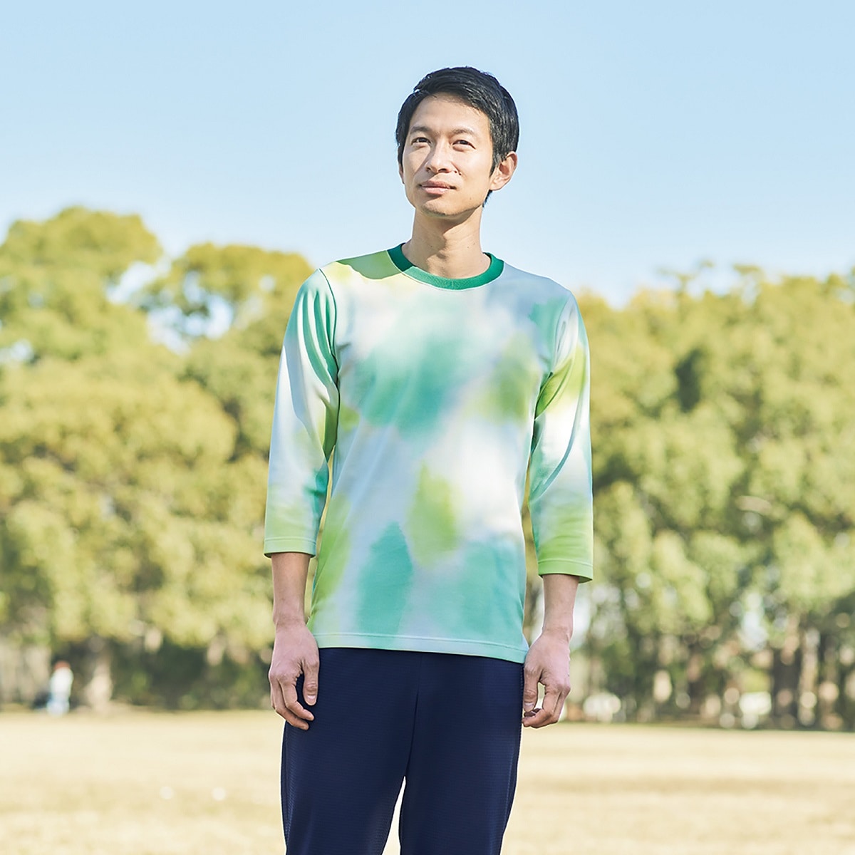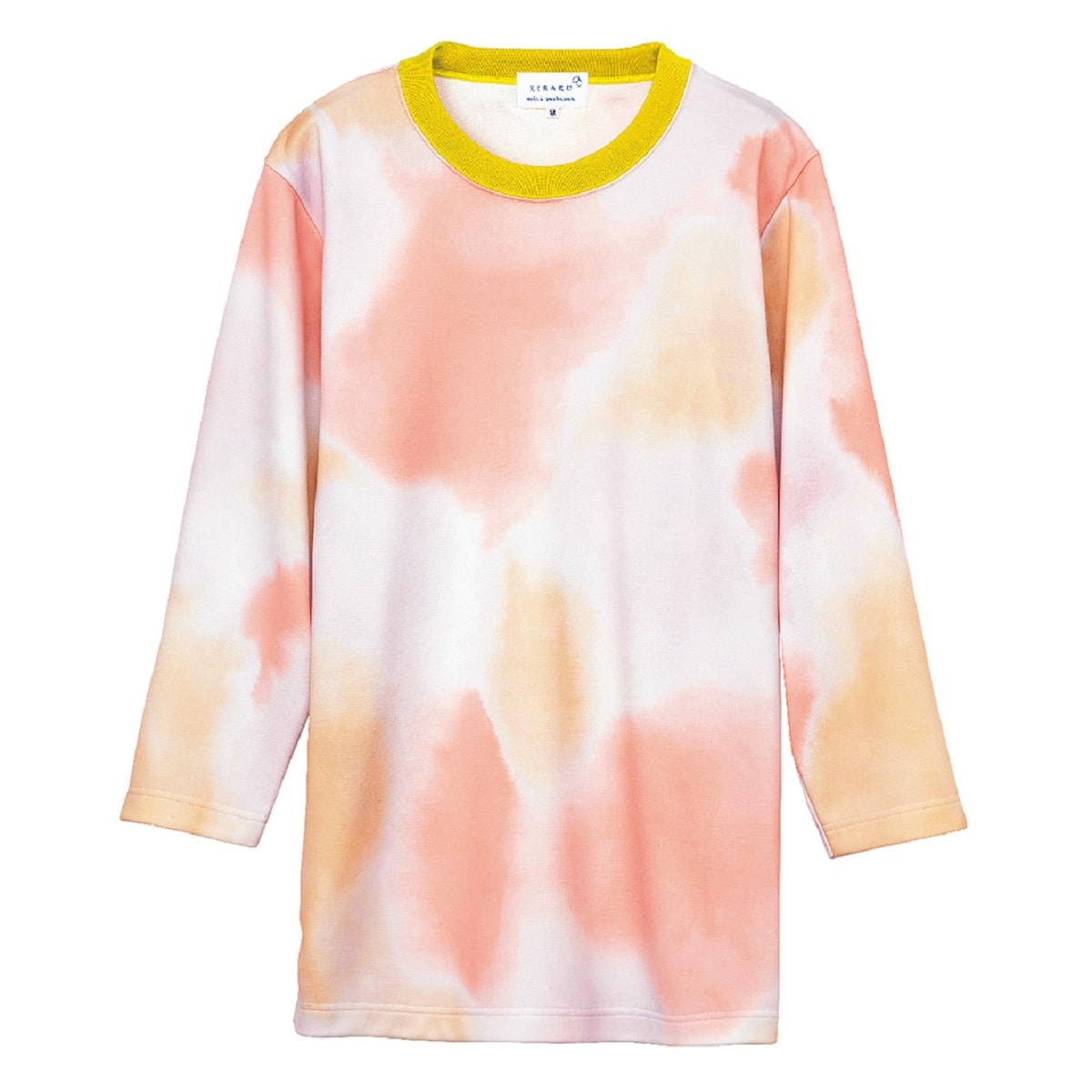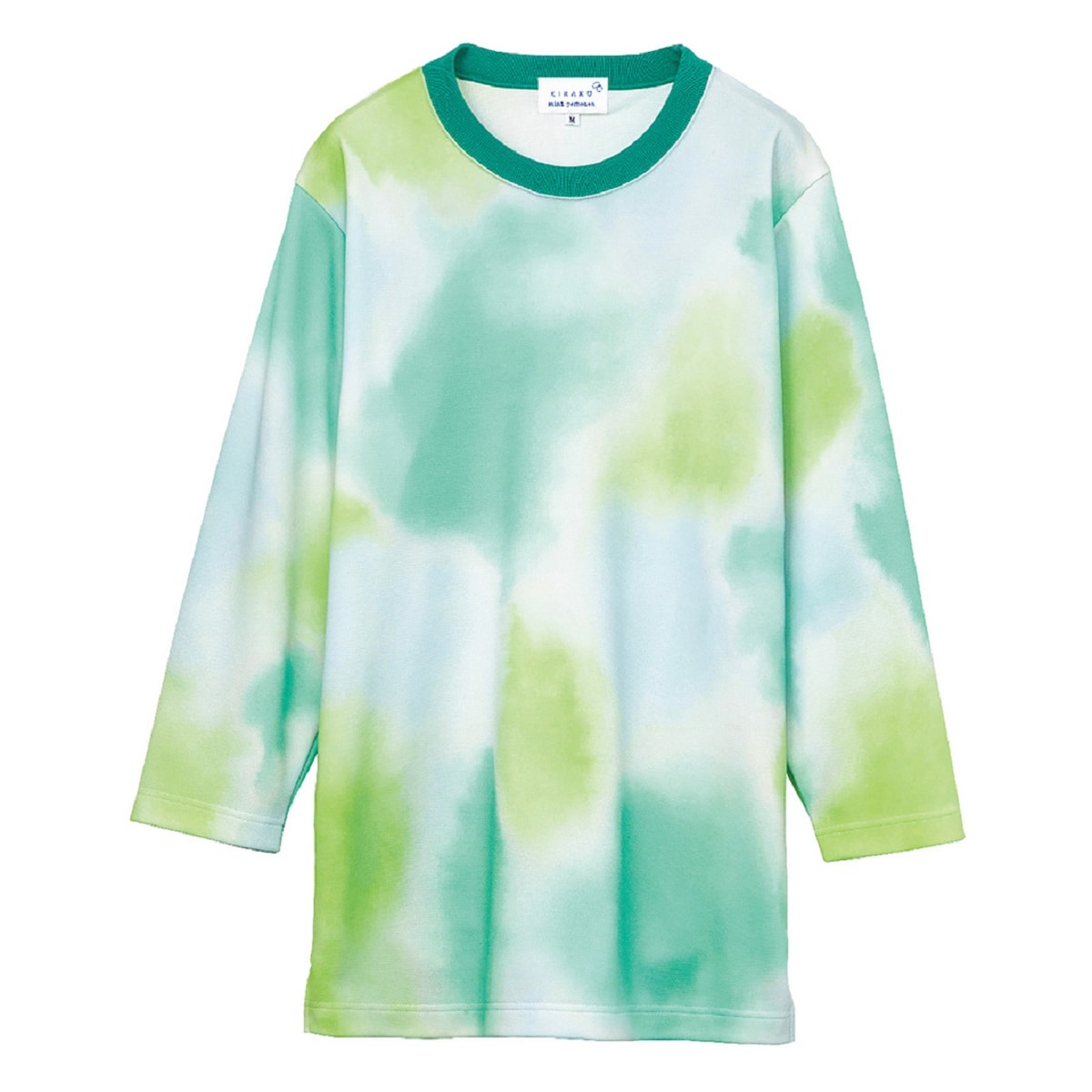 【品番: 4P13002 】 男女兼用 Tシャツ 介護士用 吸汗 速乾 軽量 防透 プリント柄 七分袖 ( ミナ ペルホネン )