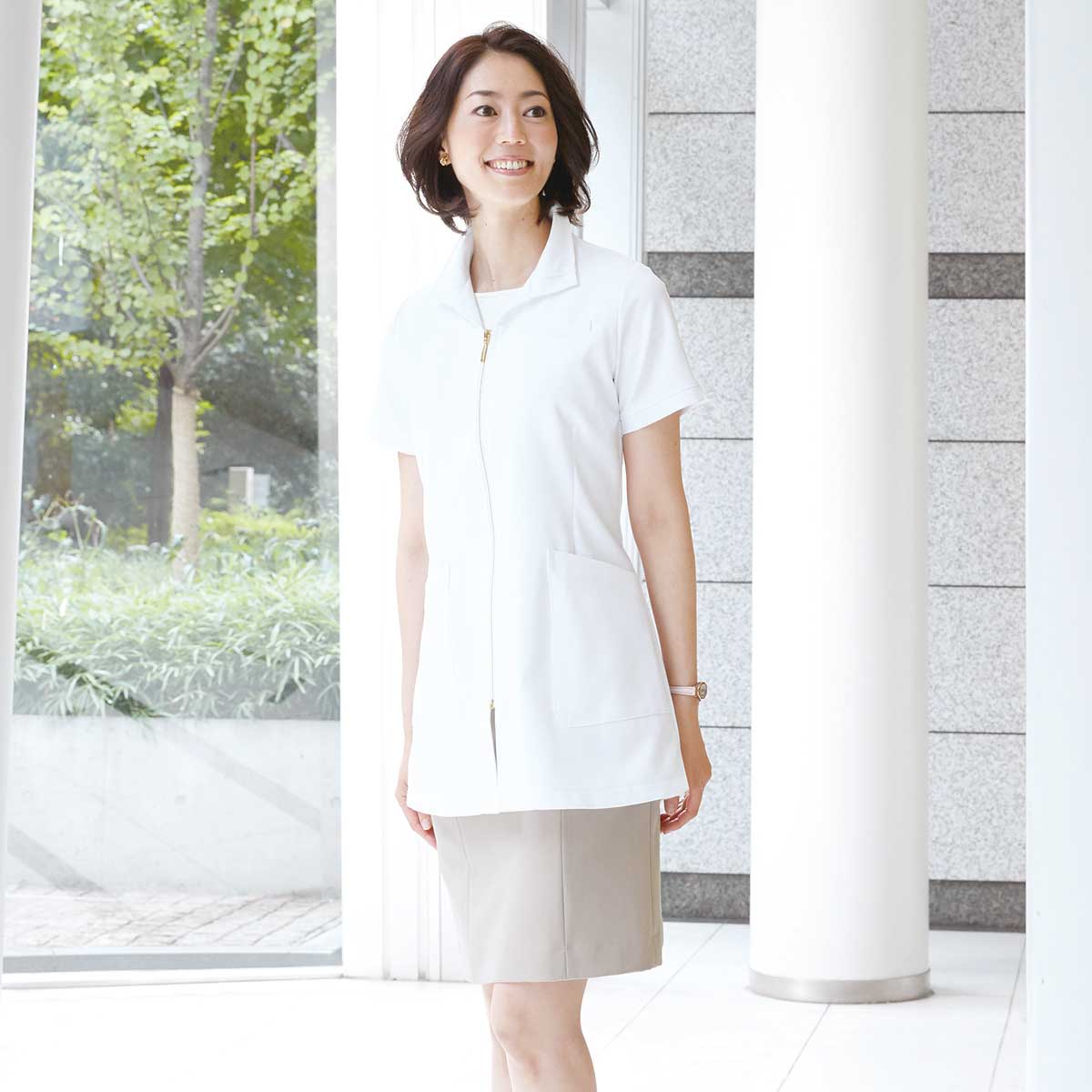 半袖 夏向け 前ファスナー診察衣調剤薬局