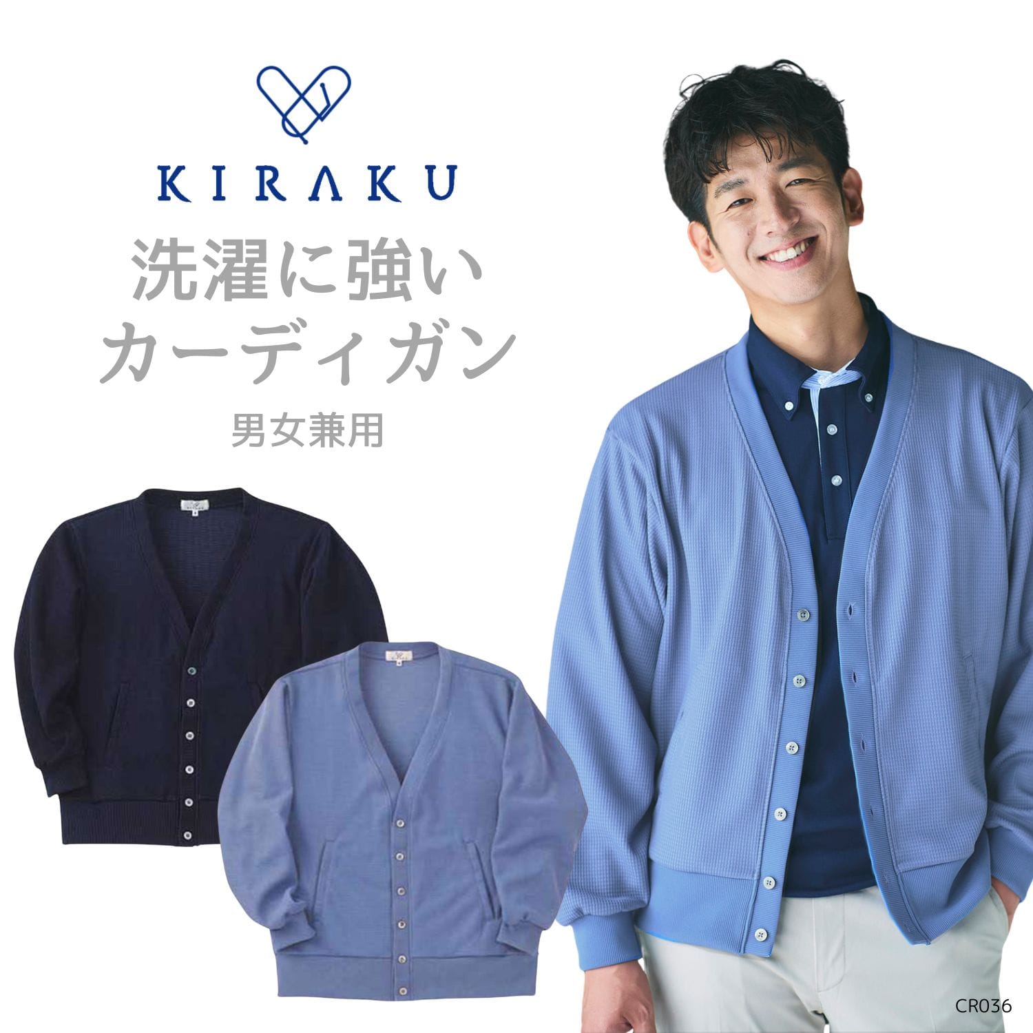 【品番: CR036 】 男女兼用 カーディガン 介護士 丸洗いOK 毛玉になりにくい ワッフル ニット キラク