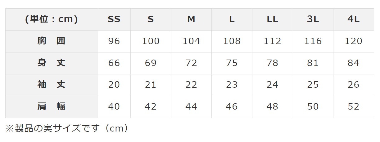 - SS / S / M / L / LL / 3L / 4L