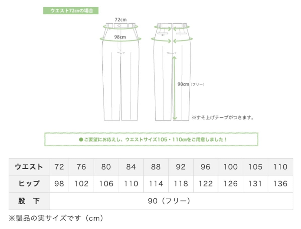 - ウエスト 72 / 76 / 80 / 84 / 88 / 96 / 100 / 105 / 110 / 115 / 120 (cm)