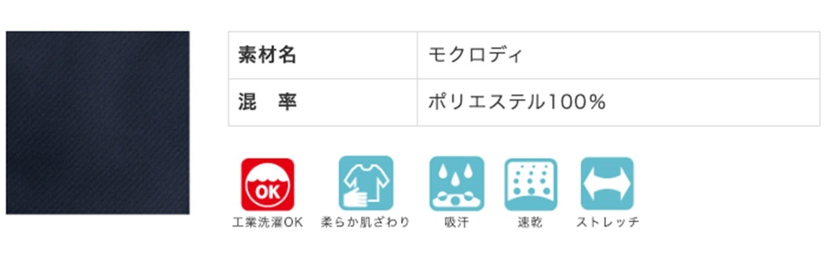 工業洗濯に対応した、縮みの少ない商品です。肌面の汗をすばやく吸い取る素材です。汗をかいても快適な着心地が持続します。生地の汗や水などを素早く発散する素材です。洗濯後の乾燥も早い商品です。肌あたりにこだわった、柔らかな着心地の素材です。身体の動きにフィットする、伸縮性にすぐれた素材です。※濃色は汚染の可能性がございますので、白物と分けてお洗いください。