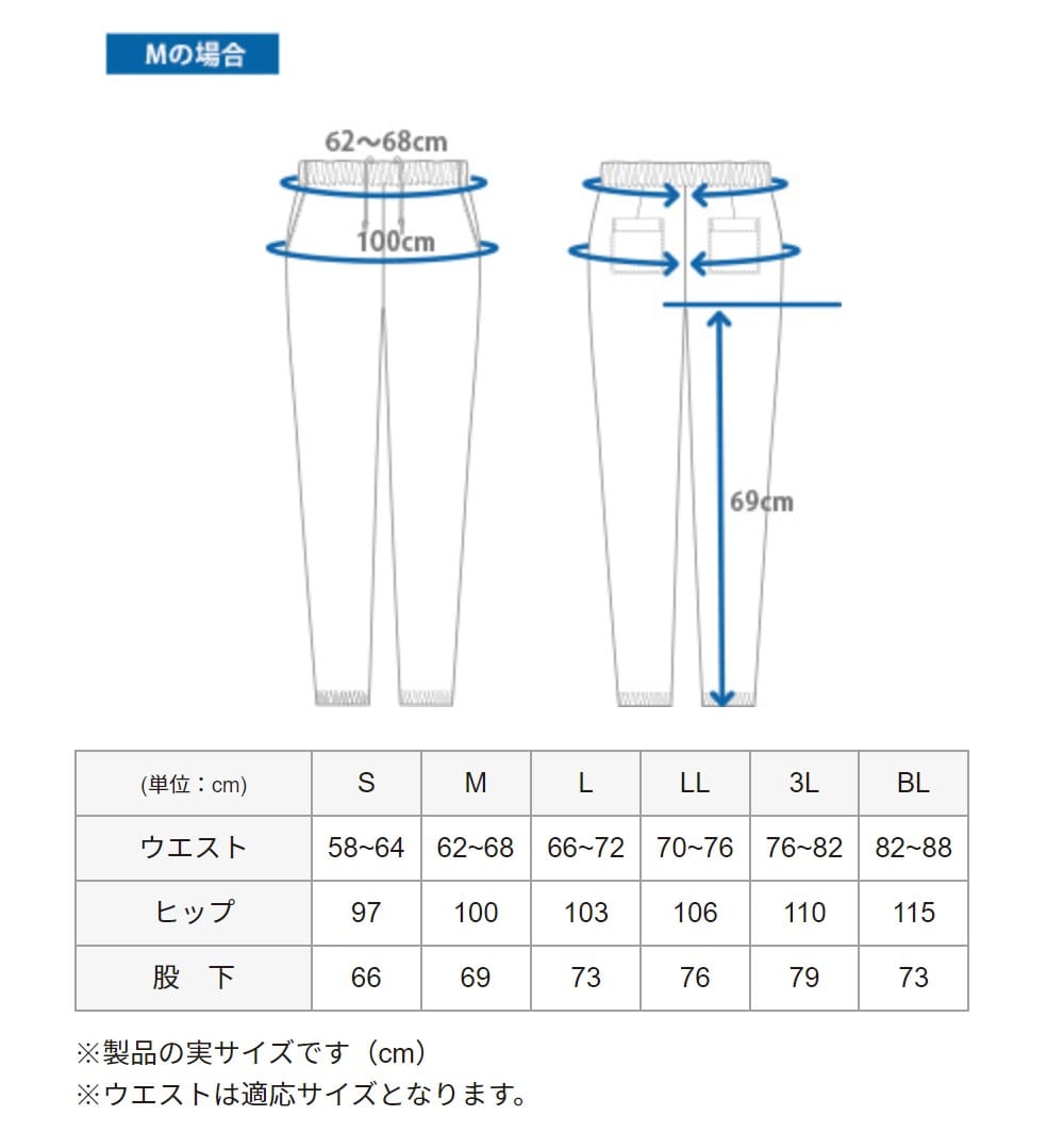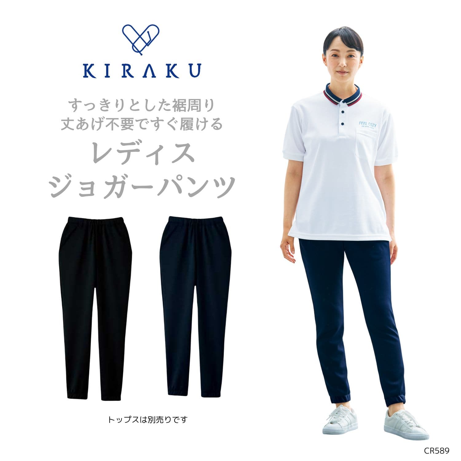 【品番: CR589 】 レディース ジョガーパンツ 介護士 ストレッチ素材 ウエストゴム 裾直し不要 キラク