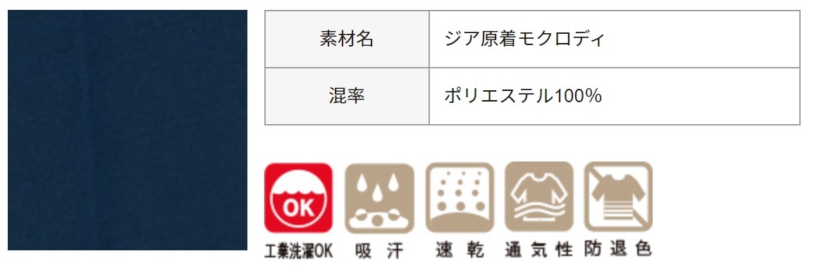 工業洗濯に対応した、縮みの少ない商品です。 ※濃色は汚染の可能性がございますので、白物と分けてお洗いください。 肌面の汗を素早く吸い取る素材です。汗をかいても快適な着ごこちが持続します。 生地の汗や水などを素早く発散する素材です。洗濯後の乾燥も早い商品です。 衣服の内側(肌面)と外側の空気が移動しやすい素材です。汗をかいても快適な着ごこちです。 繰り返し洗濯しても色褪せしにくい素材です。