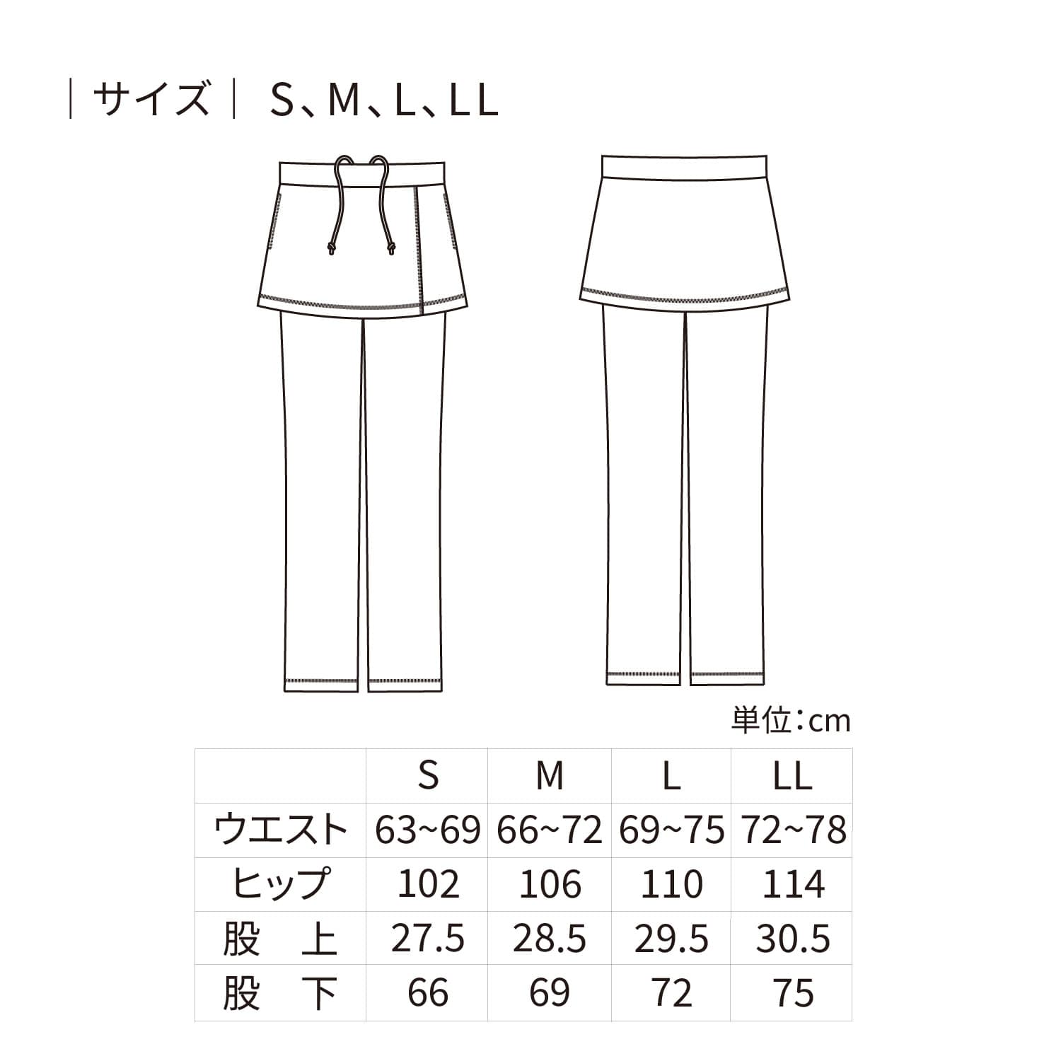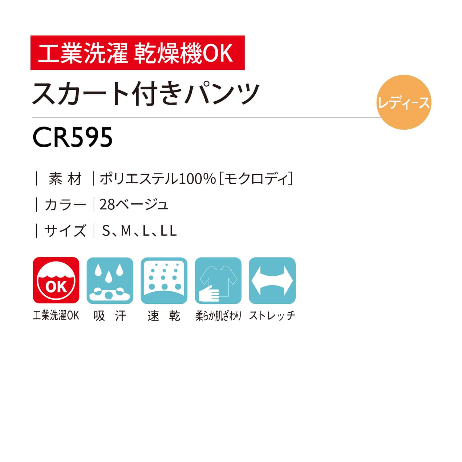 【品番: CR595 】 レディーススカート付きパンツ 裾直し不要 キラク