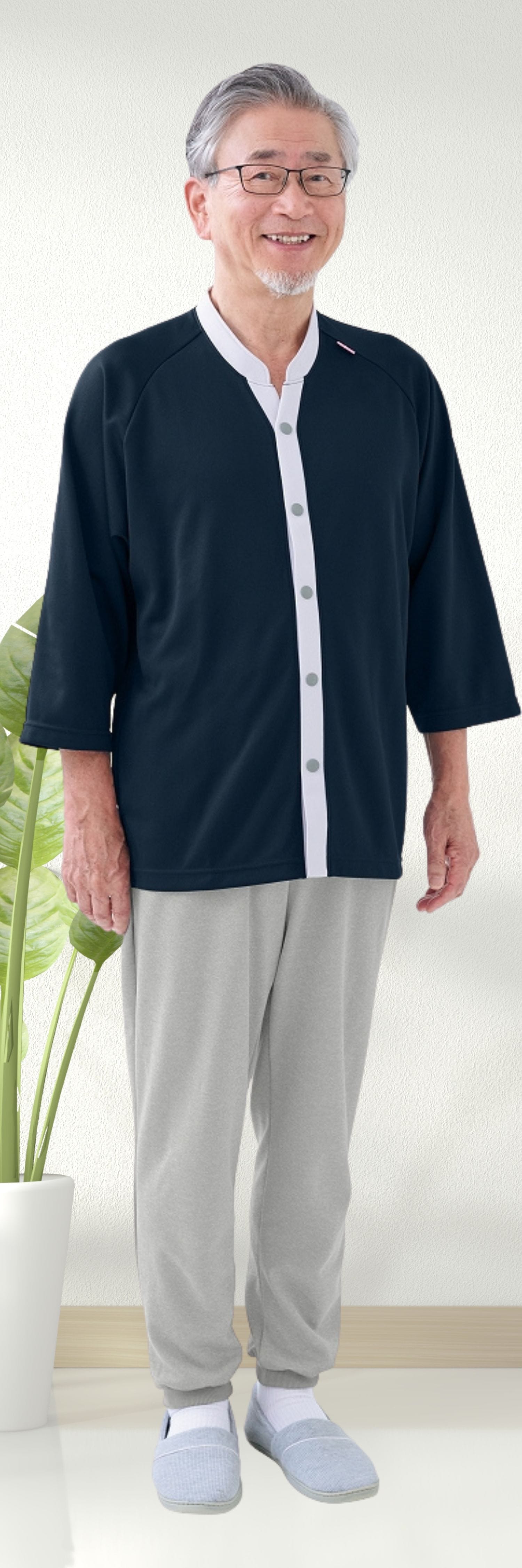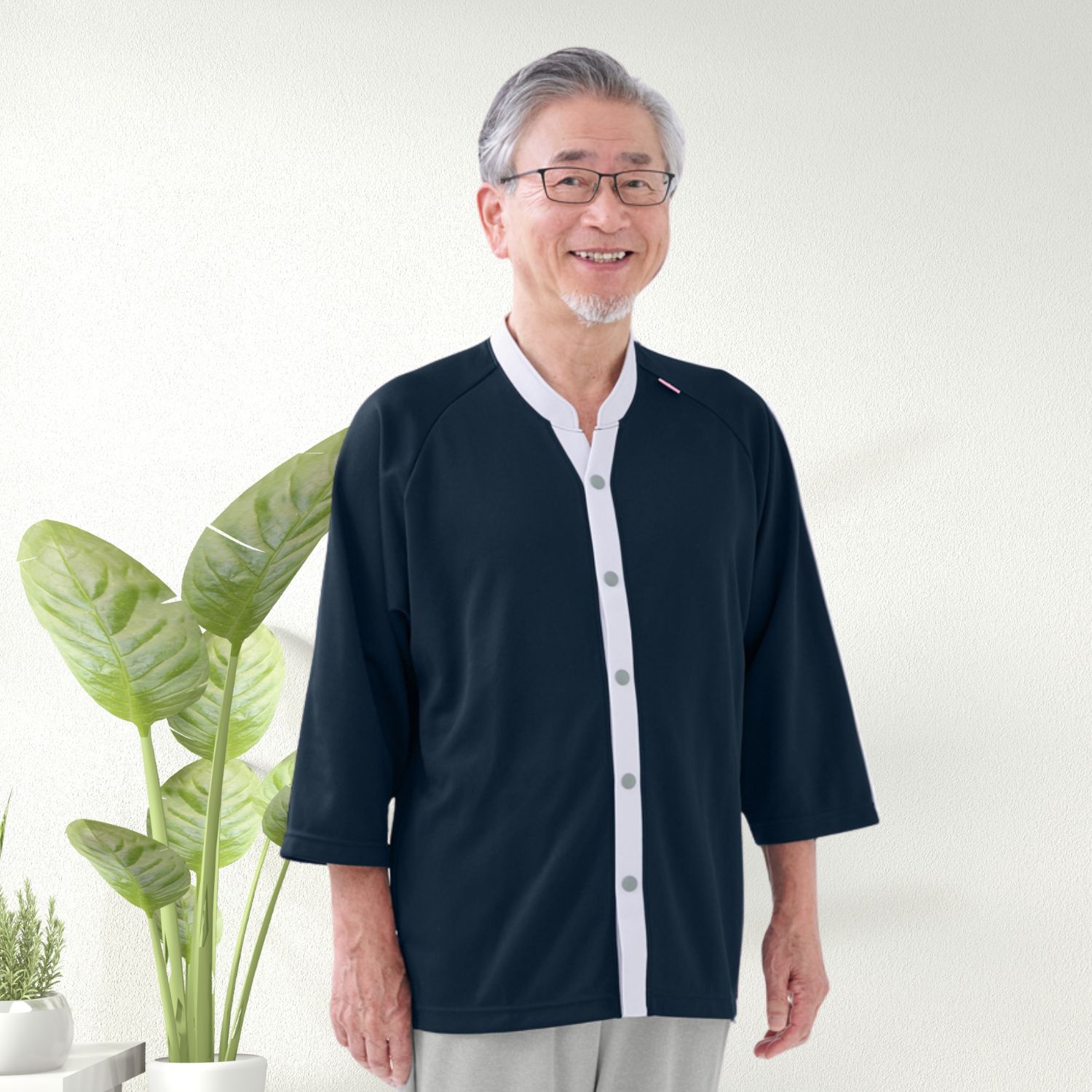 【品番: CR801 】 男女兼用 前開きシャツ リハビリ 入院患者向け 通年 やわらか素材 着心地快適 着脱ラク キラク