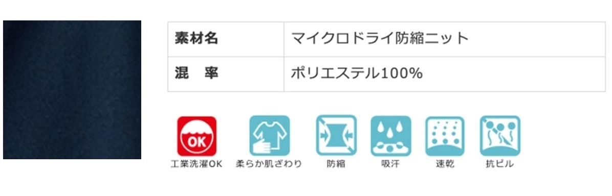 - 防縮 / 吸汗 / 速乾 / 抗ピル / 柔らか肌ざわり