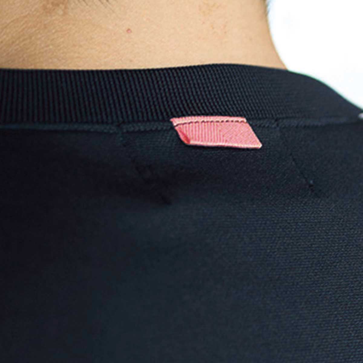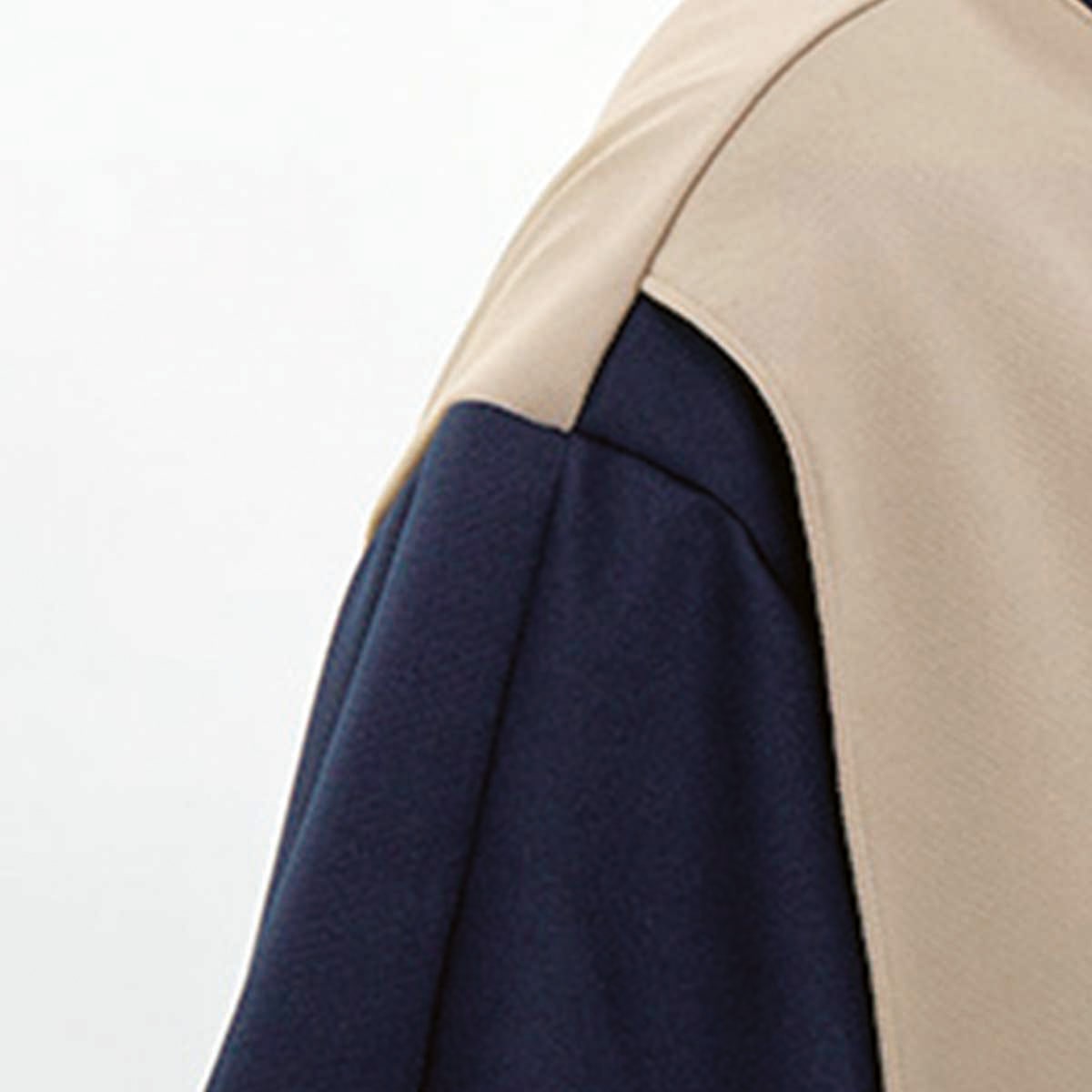従来袖下にあった縫い目を袖山側にずらしています。脇下の生地の重なりが減り、従来に比べて脇下の縫い合わせが写りこみにくくなってます、