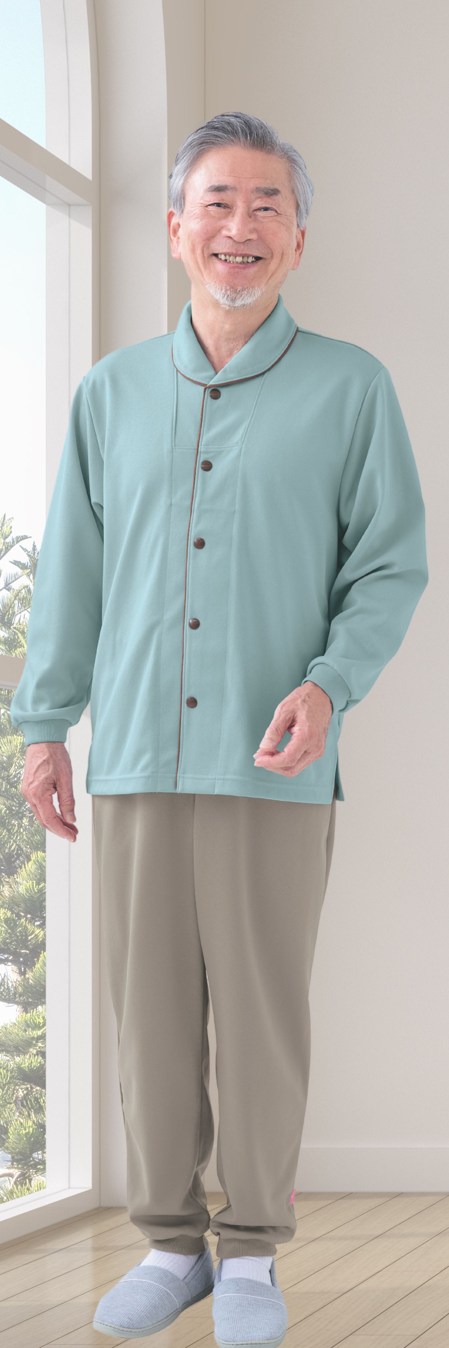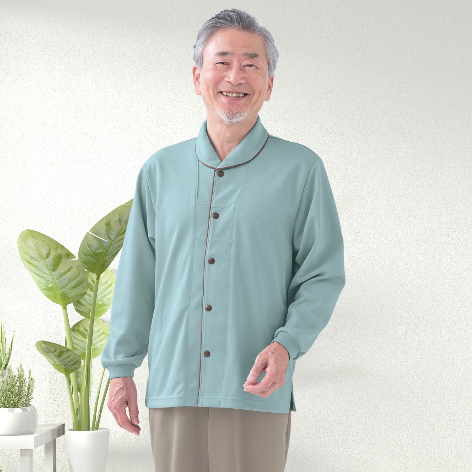 【品番: CR836 】 男女兼用 前開きシャツ 高齢者ウエア パジャマ 通年用 首元あったか ゆったりサイズ キラク 高