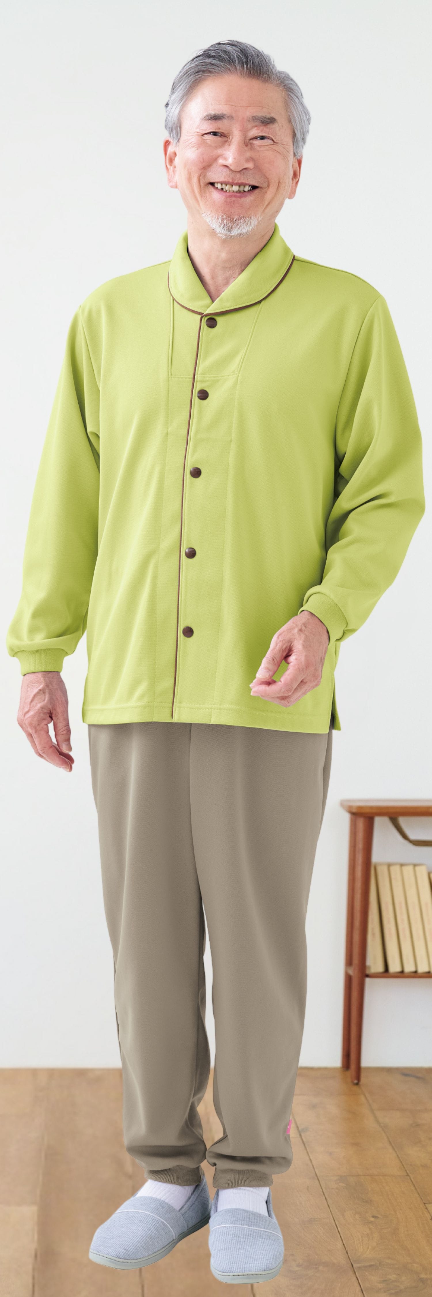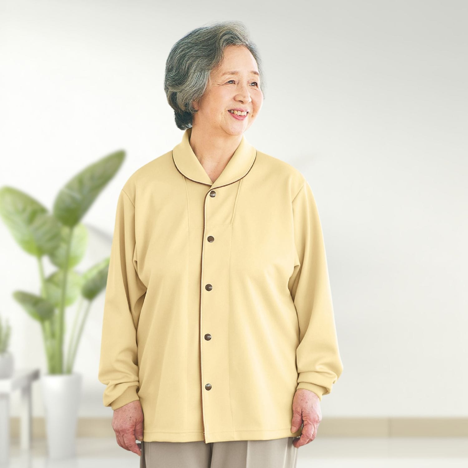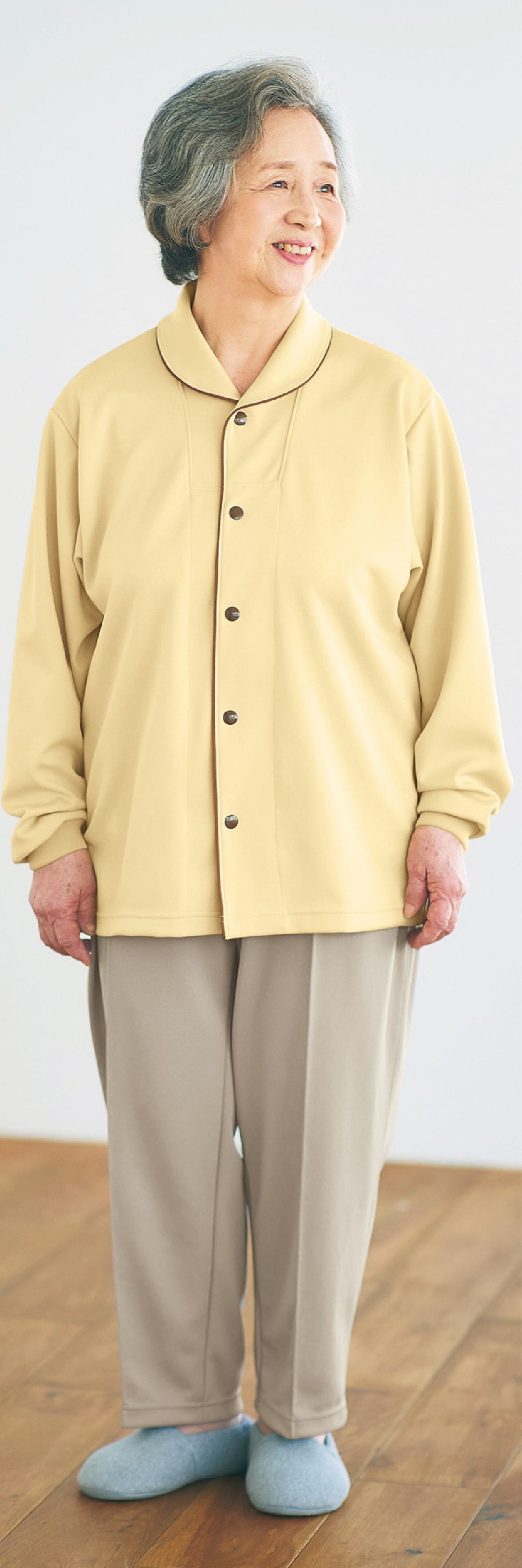 【品番: CR836 】 男女兼用 前開きシャツ 高齢者ウエア パジャマ 通年用 首元あったか ゆったりサイズ キラク