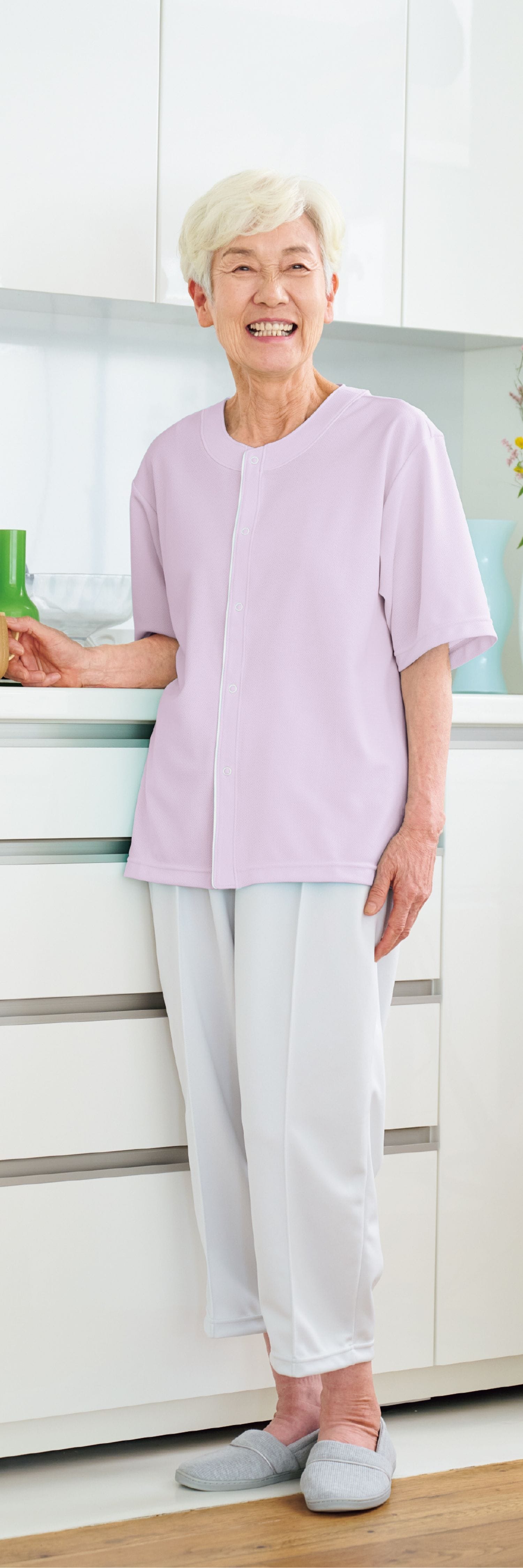 【品番: CR837 】 男女兼用 半袖シャツ 高齢者ウエア パジャマ 夏用 メッシュ素材 吸汗速乾 着脱ラク キラク