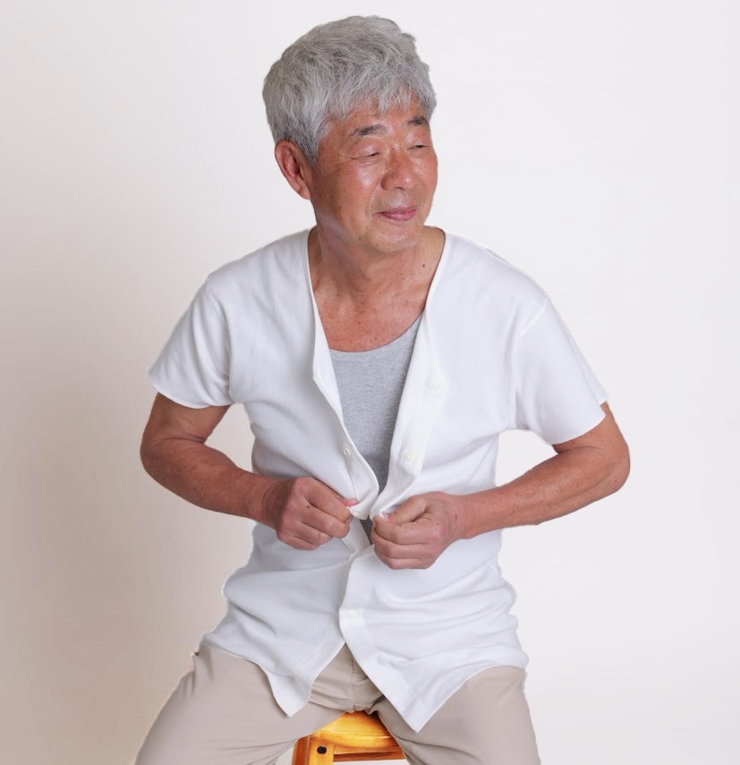 2.介護の着脱が容易 = 裏表を気にせず着ることができ、スナップボタンで着脱が簡単