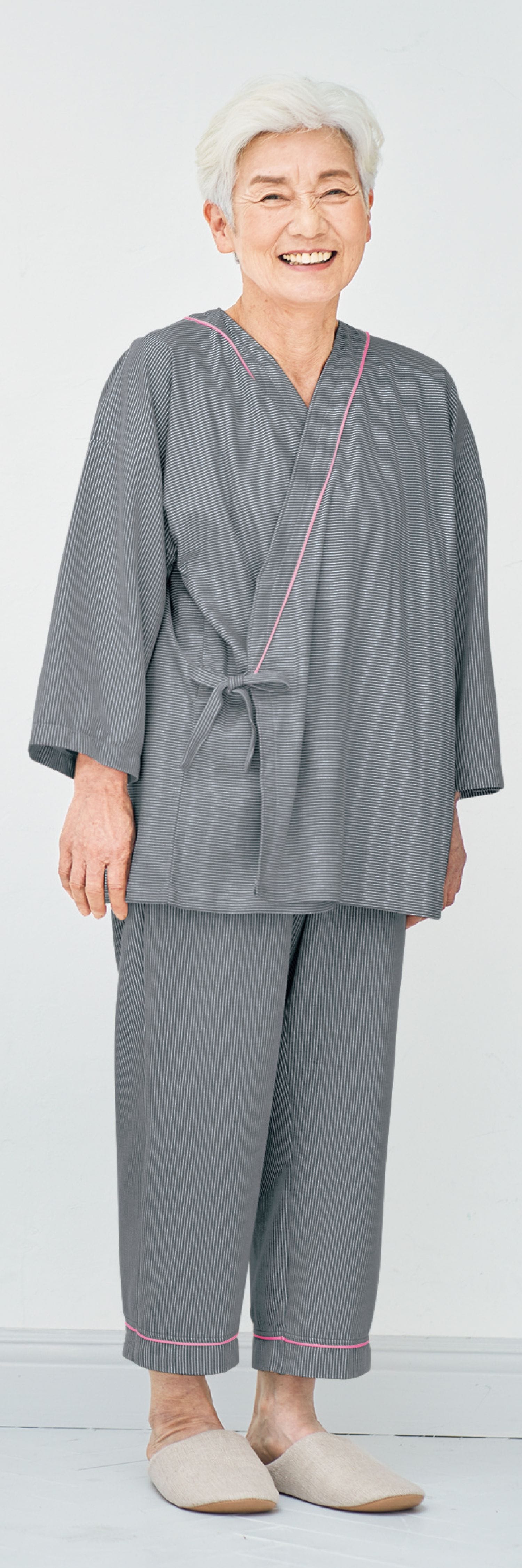 【品番: CV012 】 男女兼用 甚平 リハビリ 入院患者向け 通年 やわら着ニット ストレッチ素材でラク キラク