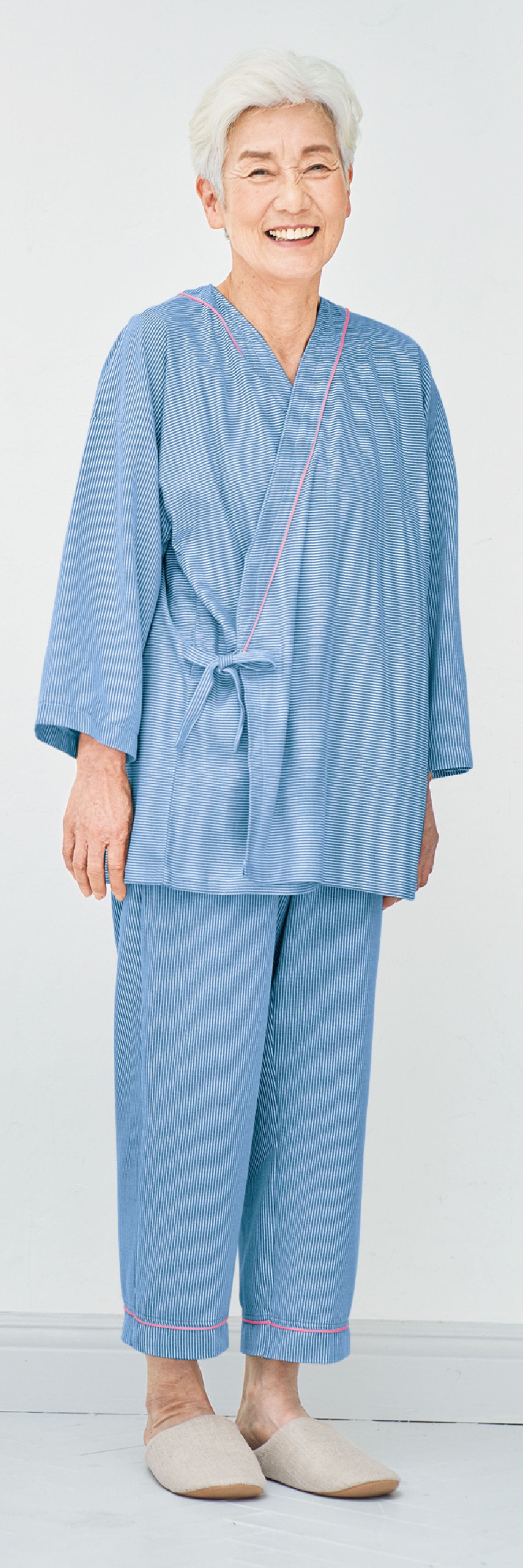 【品番: CV012 】 男女兼用 甚平 リハビリ 入院患者向け 通年 やわら着ニット ストレッチ素材でラク キラク
