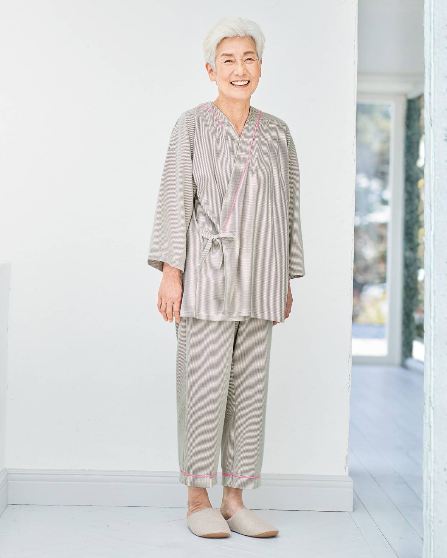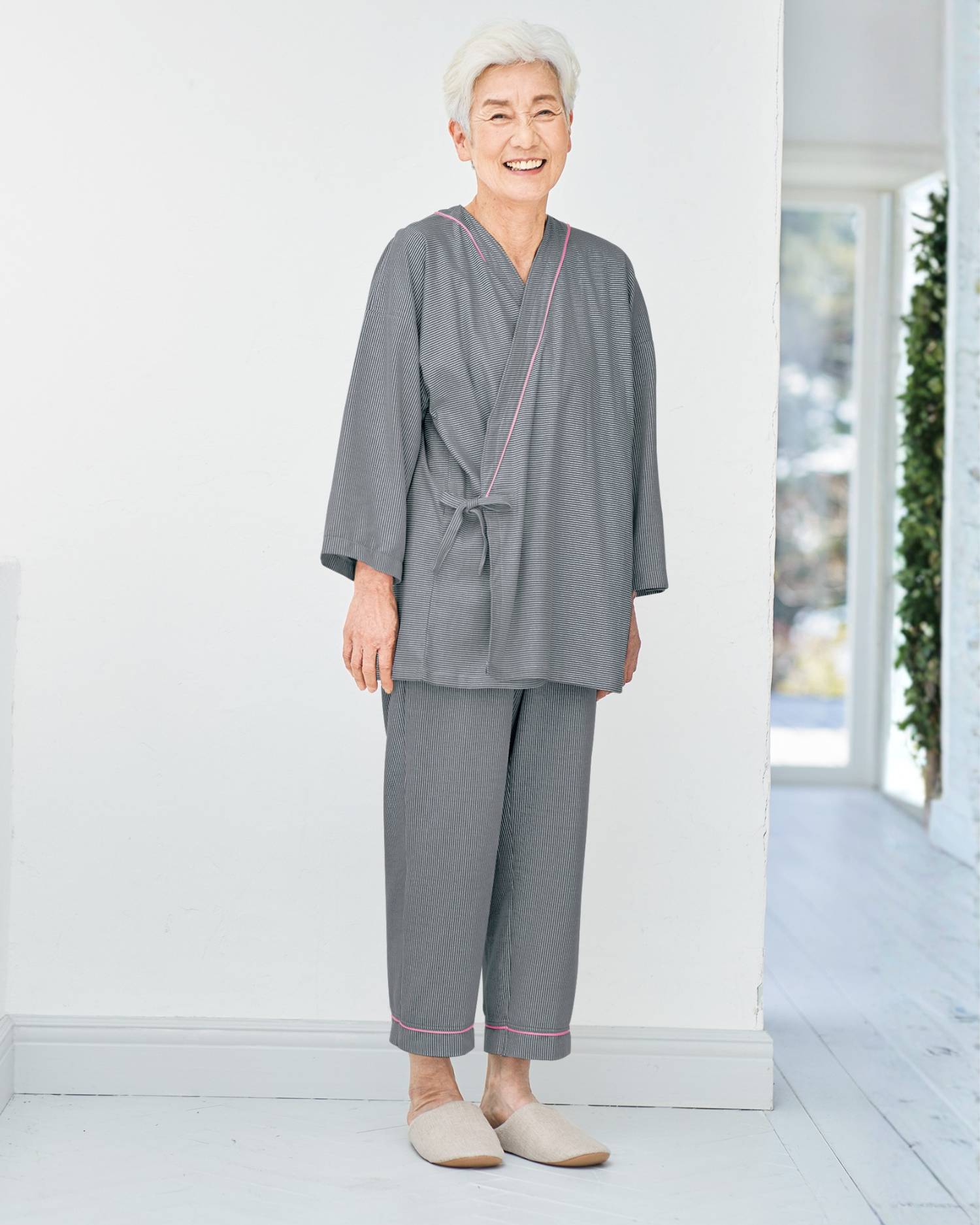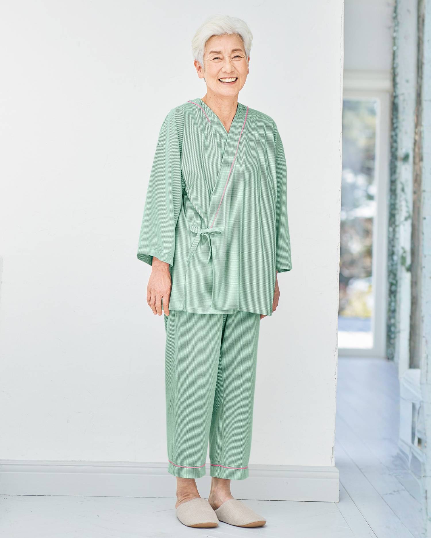 【品番: CV012 】 男女兼用 甚平 リハビリ 入院患者向け 通年 やわら着ニット ストレッチ素材でラク キラク