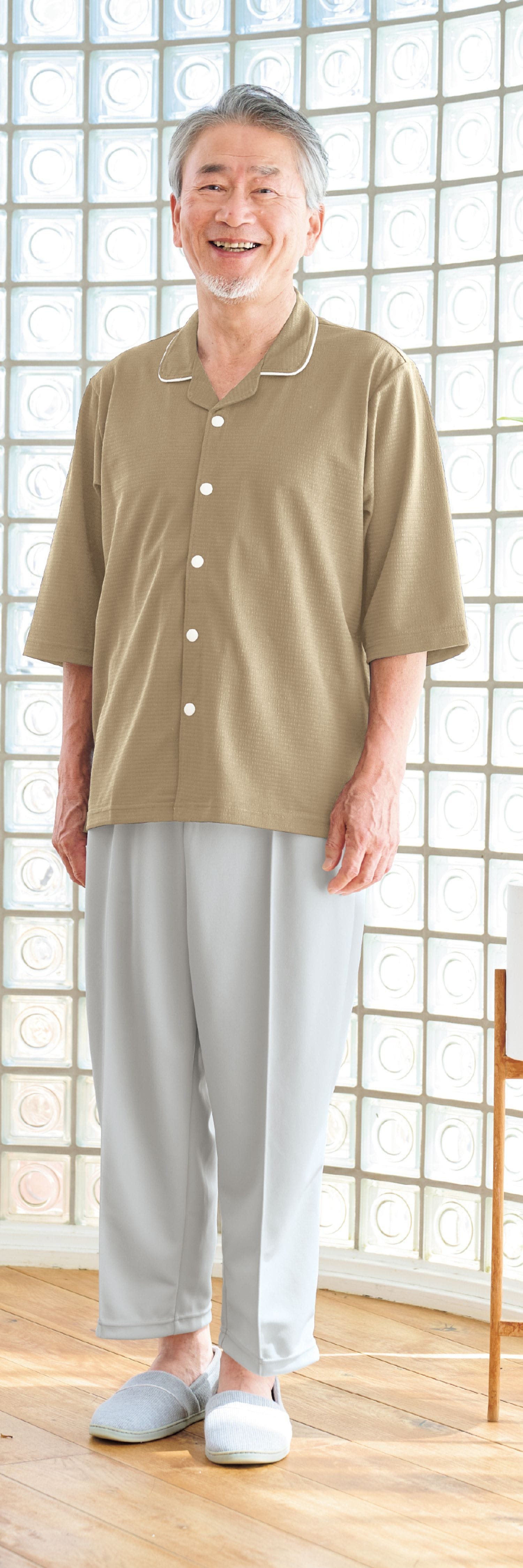 【品番: CV203 】 男女兼用 前開きシャツ 高齢者ウエア パジャマ 夏用 サラサラ清涼素材のパジャマ 襟付 キラク