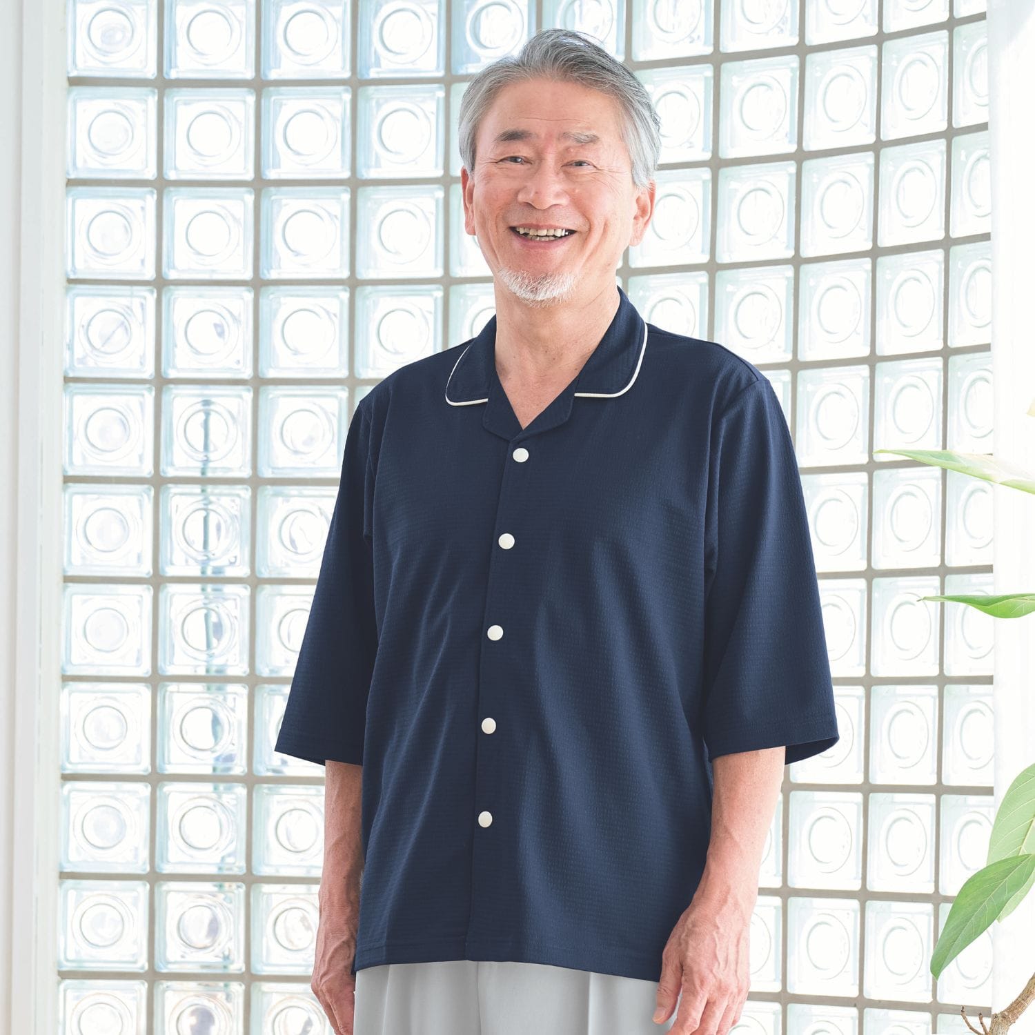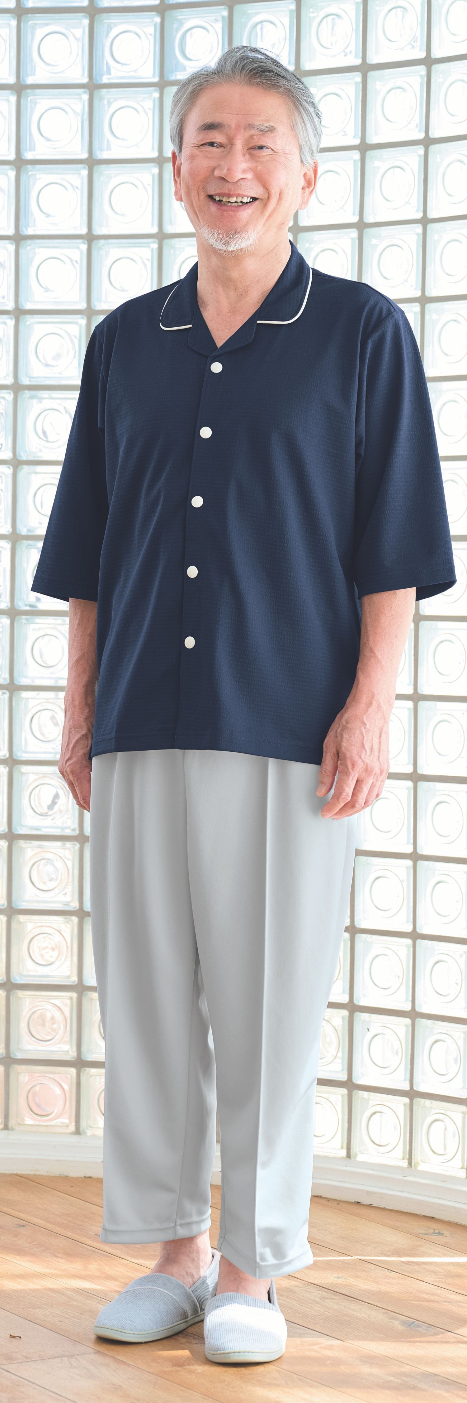 【品番: CV203 】 男女兼用 前開きシャツ 高齢者ウエア パジャマ 夏用 サラサラ清涼素材のパジャマ 襟付 キラク