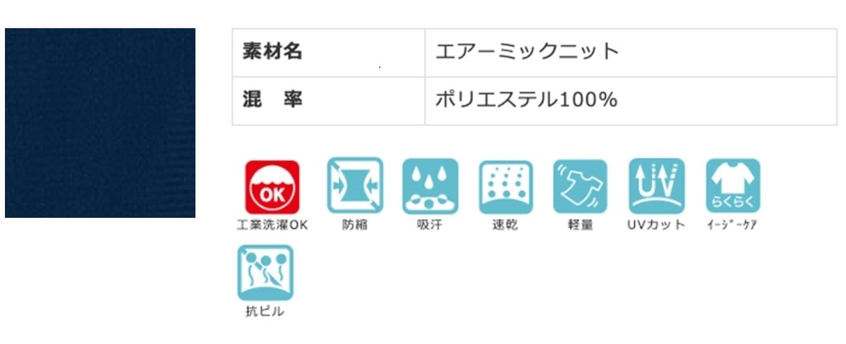 - 防縮 / 吸汗 / 速乾 / 軽量 / イージーケア / 抗ピル / UVカット