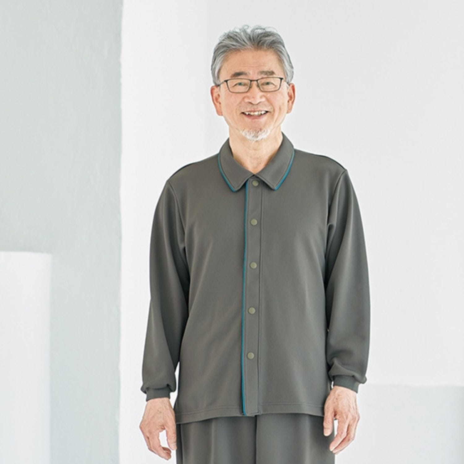 【品番: CV204 】 男女兼用 前開きシャツ 高齢者ウエア パジャマ 冬用 制菌素材 肉厚素材で安心感 キラク