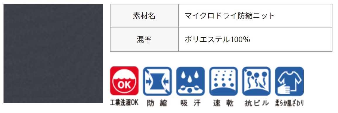 - 防縮 / 吸汗 / 速乾 / 抗ピル / 柔らか肌ざわり