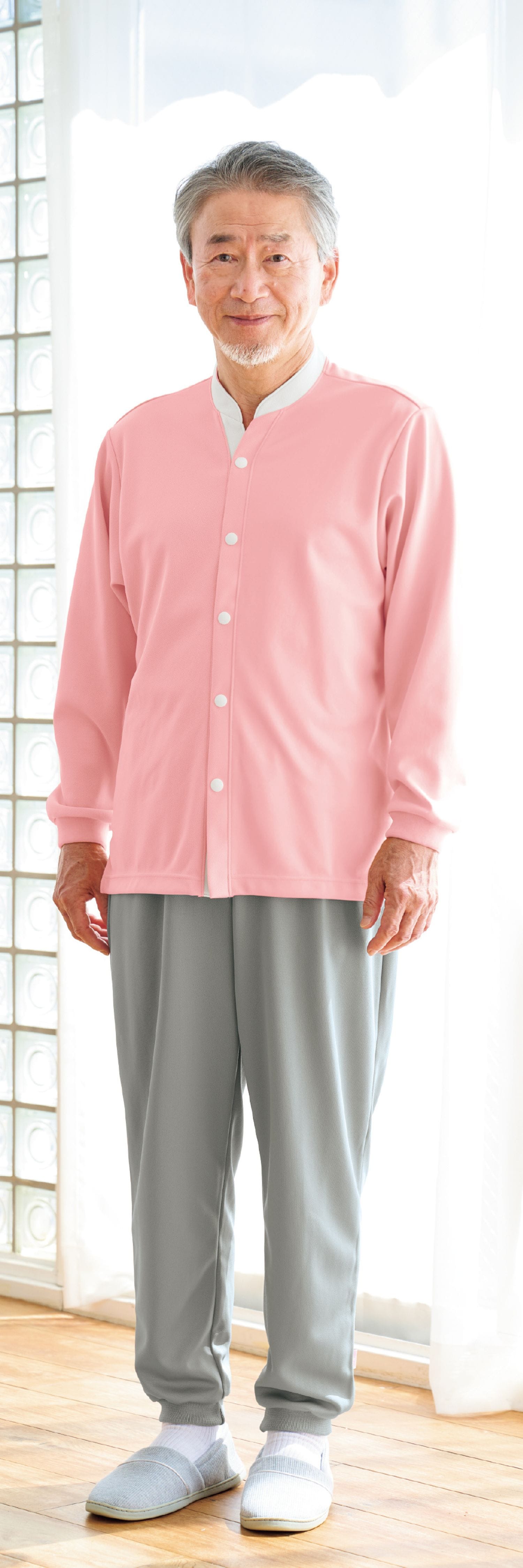 【品番: CV209 】 男女兼用 前開きシャツ 高齢者ウエア パジャマ 通年 ニット素材で着心地快適 着脱が楽 キラク