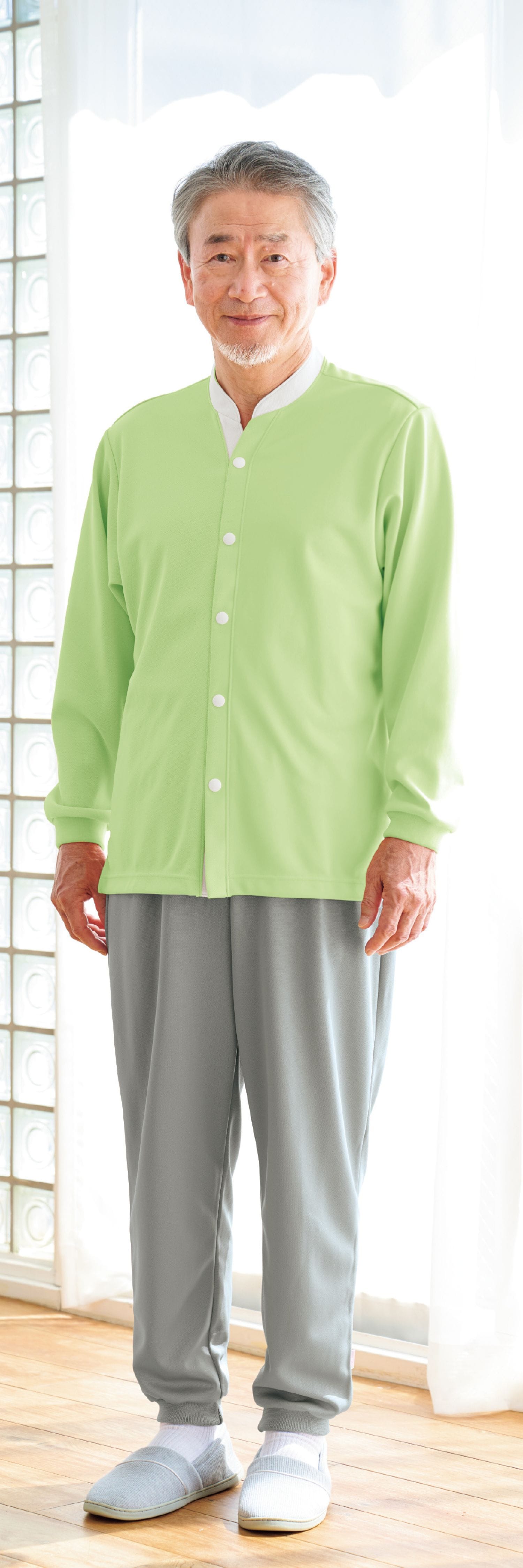 【品番: CV209 】 男女兼用 前開きシャツ 高齢者ウエア パジャマ 通年 ニット素材で着心地快適 着脱が楽 キラク