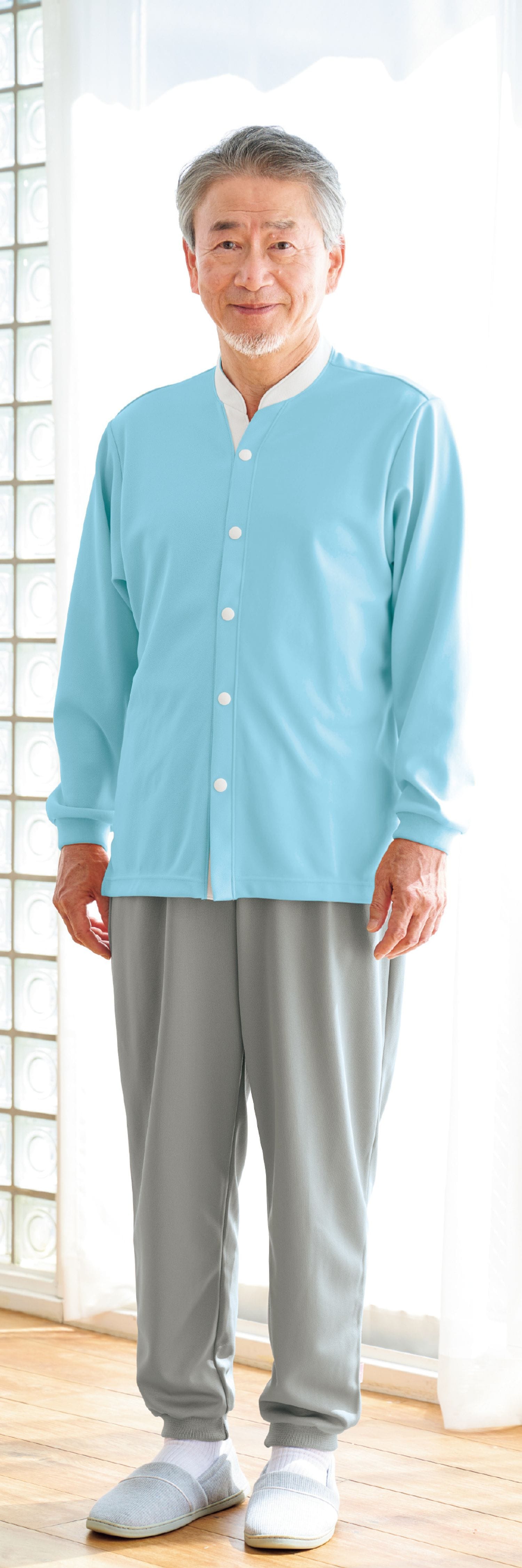 【品番: CV209 】 男女兼用 前開きシャツ 高齢者ウエア パジャマ 通年 ニット素材で着心地快適 着脱が楽 キラク