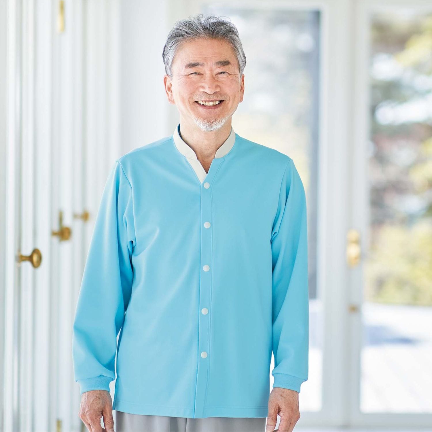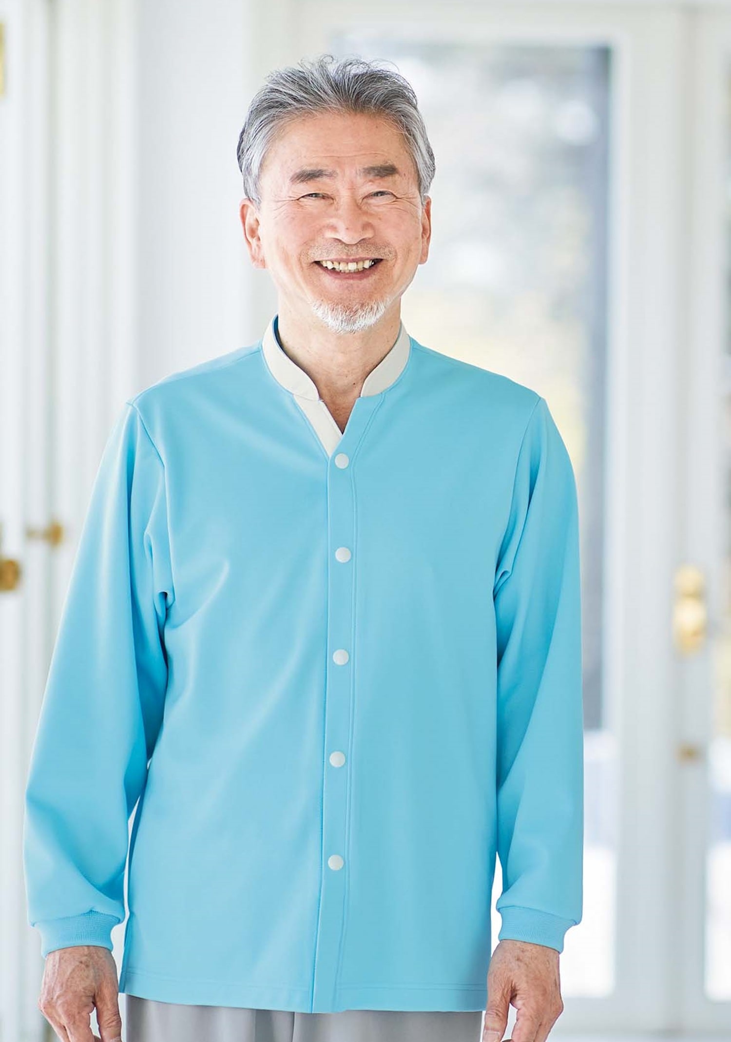 【品番: CV209 】 男女兼用 前開きシャツ 高齢者ウエア パジャマ 通年 ニット素材で着心地快適 着脱が楽 キラク