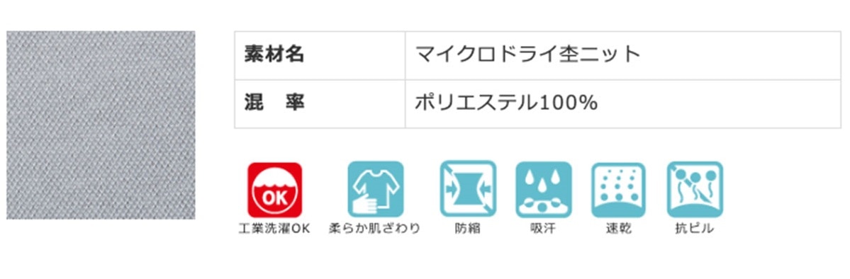 - 防縮 / 吸汗 / 速乾 / 抗ピル / 柔らか肌ざわり