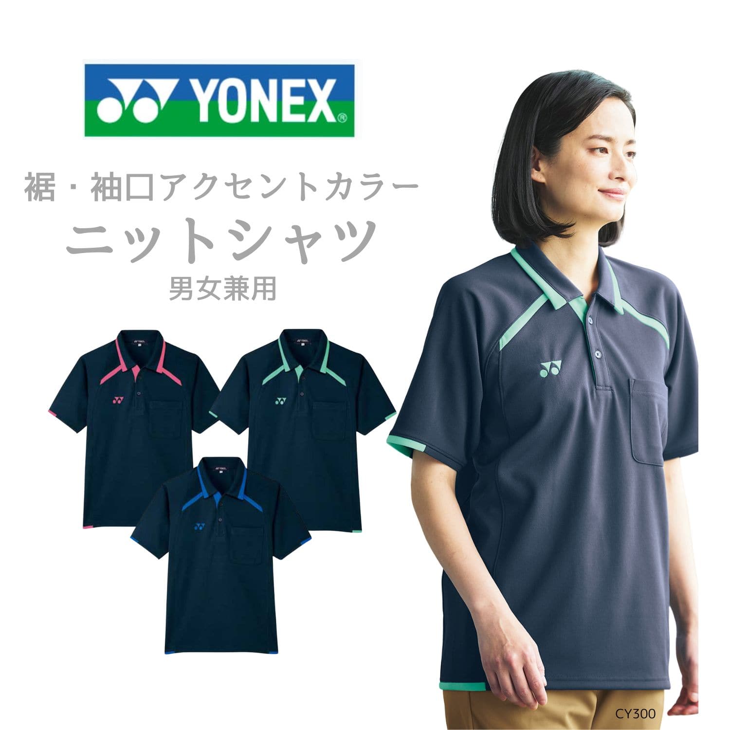 【品番: CY300 】 男女兼用 シャツ 介護士 ニット 通気性 ストレッチ イージーケア YONEX × キラク