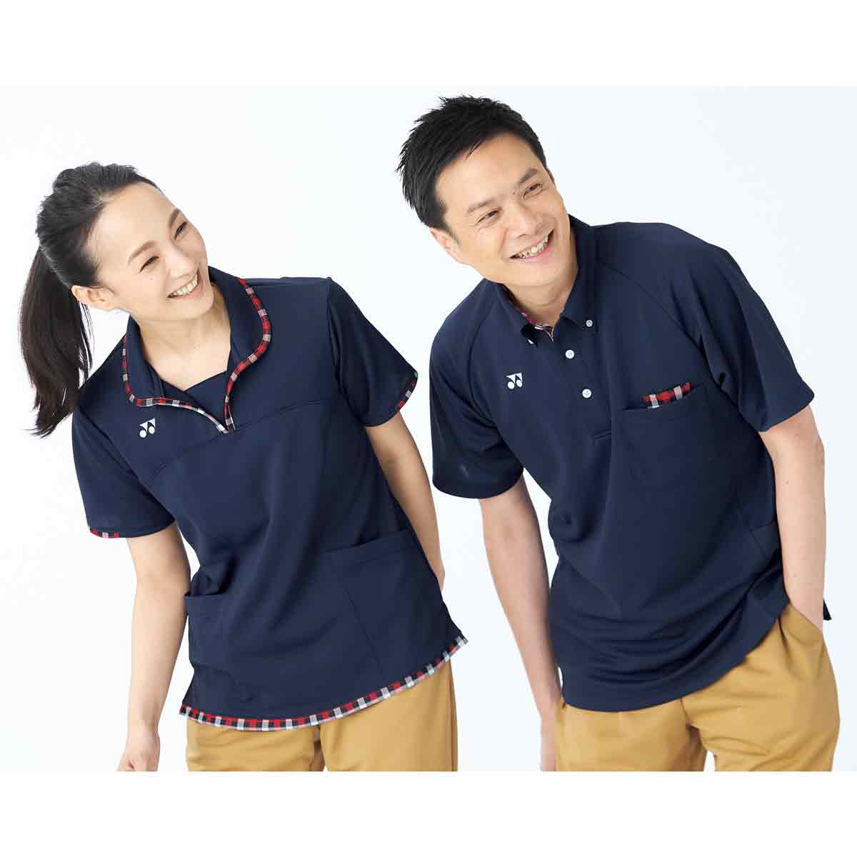【品番: CY303 】 レディース シャツ 介護士 ニット 通気性 サラサラ素材 チェック YONEX × キラク