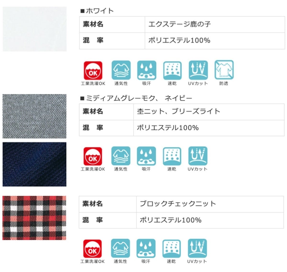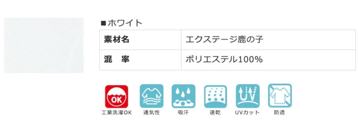 - ホワイト : 吸汗 / 速乾 / 通気性 / 防透 / UVカット