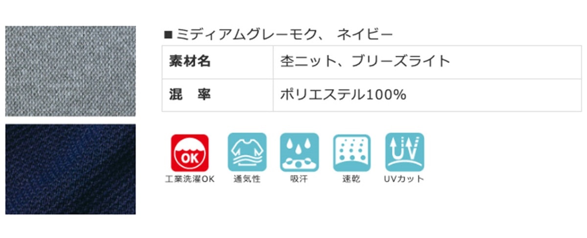 ミディアムグレーモク ・ ネイビー : 吸汗 / 速乾 / 通気性 / UVカット