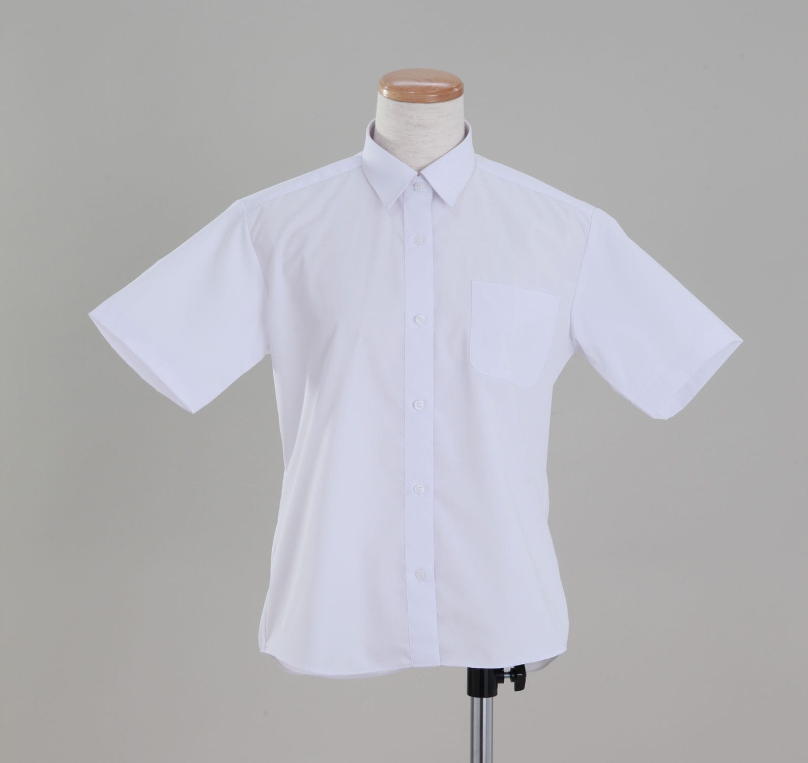 つるっとしたブロード生地を使用した定番のスクールシャツです。