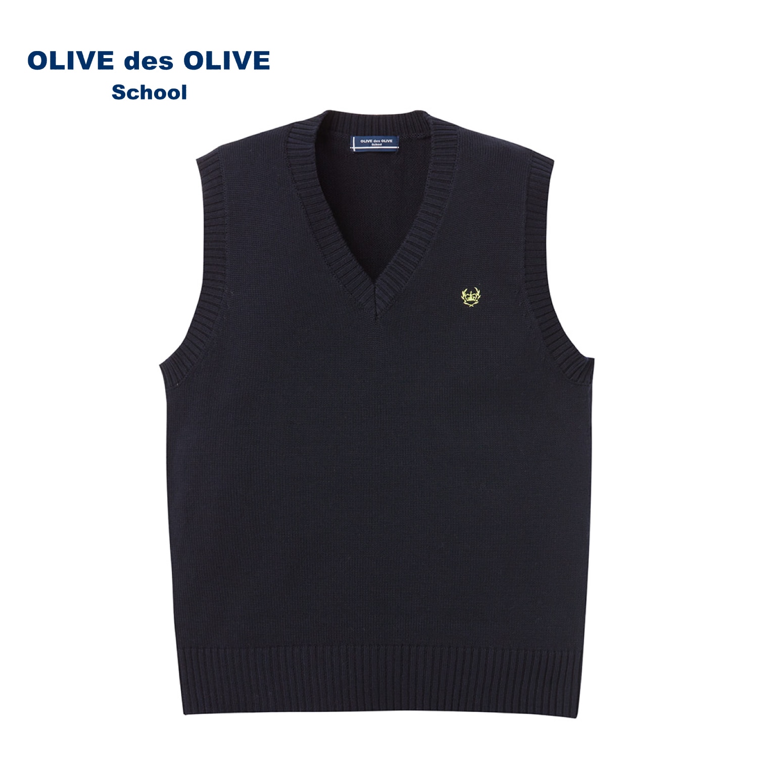 綿混 ベスト クラウン刺繍 オリーブデオリーブスクール
