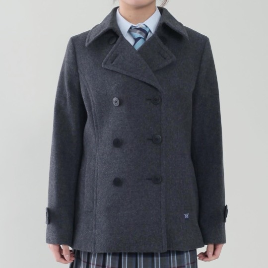 ピーコート ショート丈 飾りベルト付き オリーブデオリーブスクール